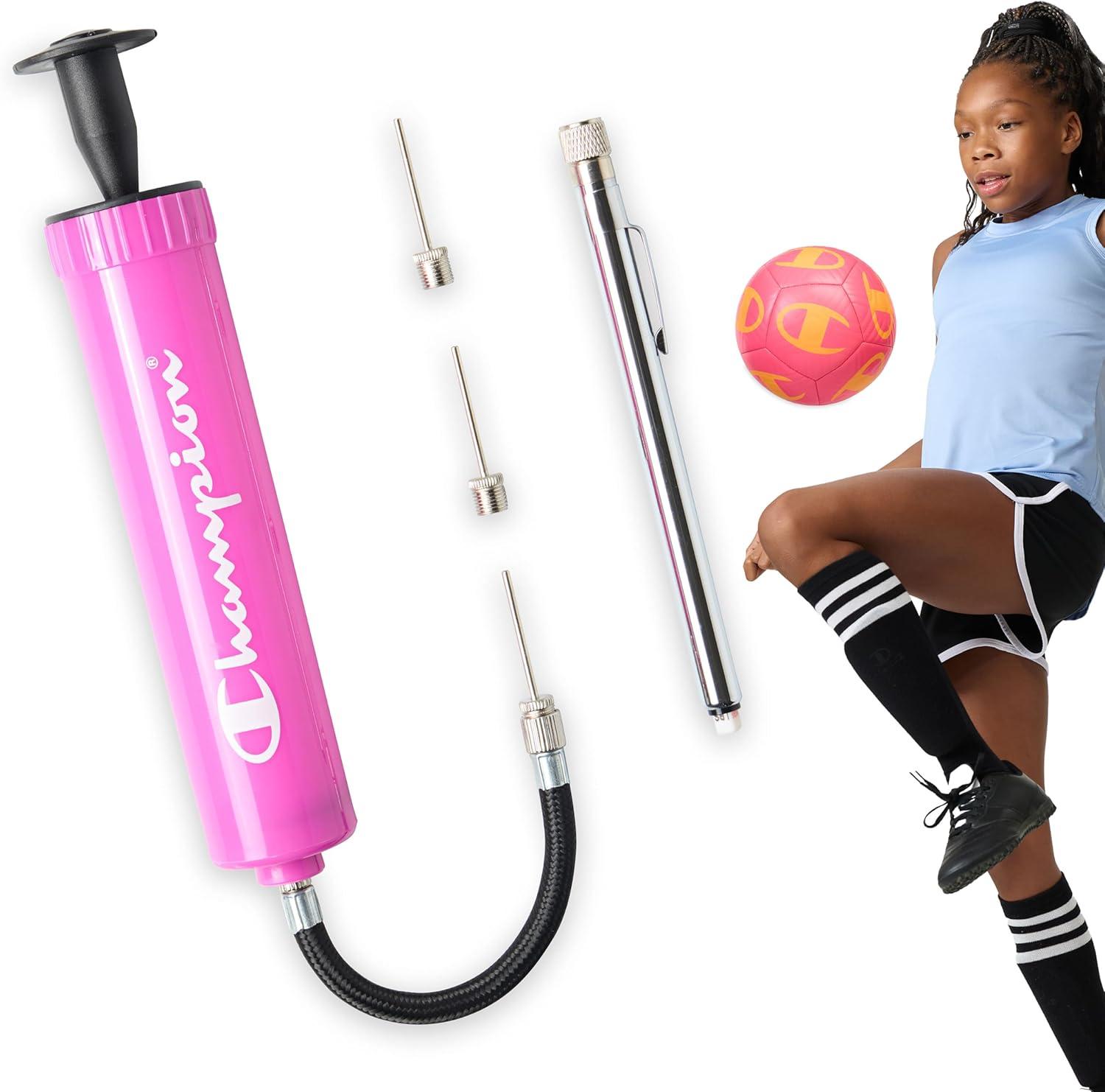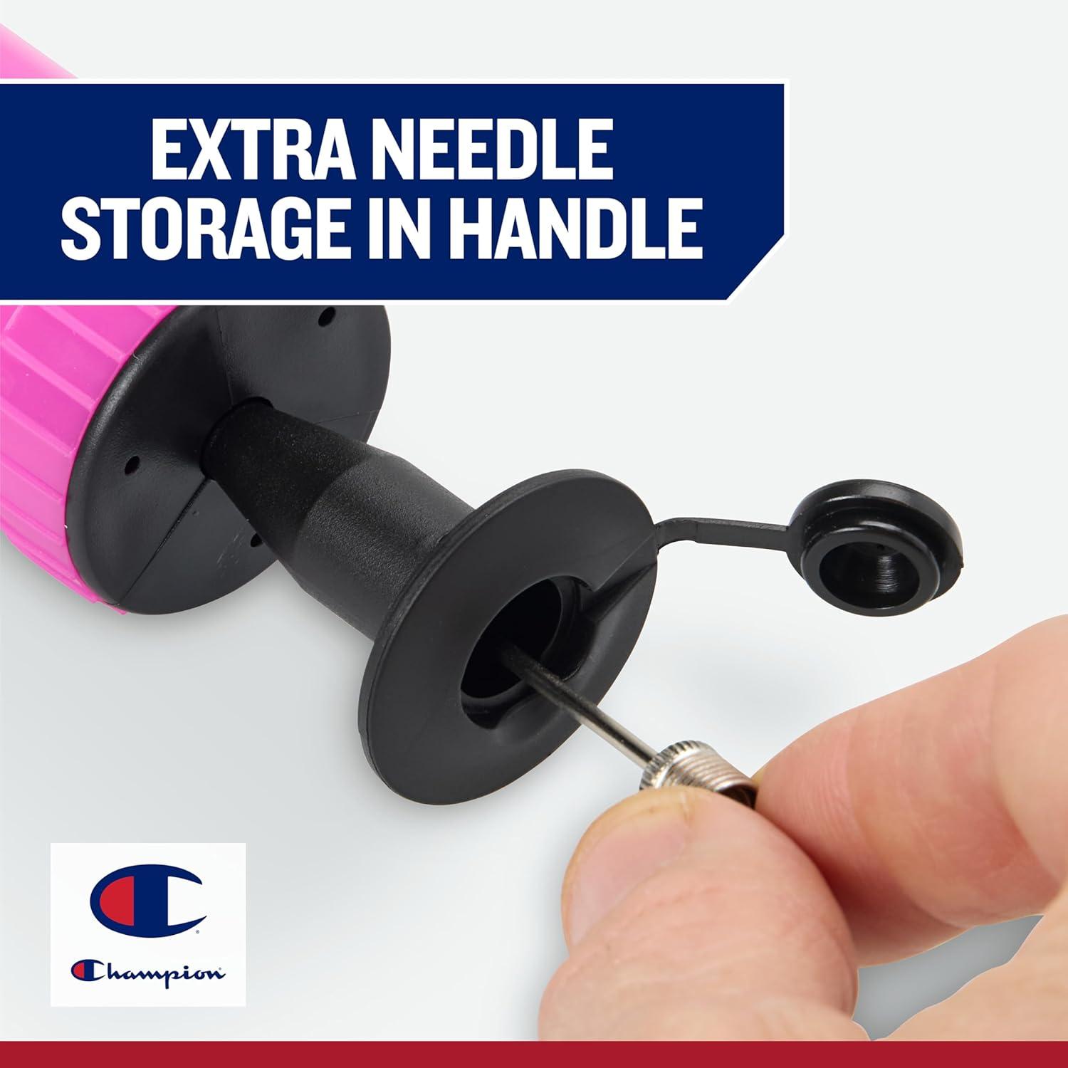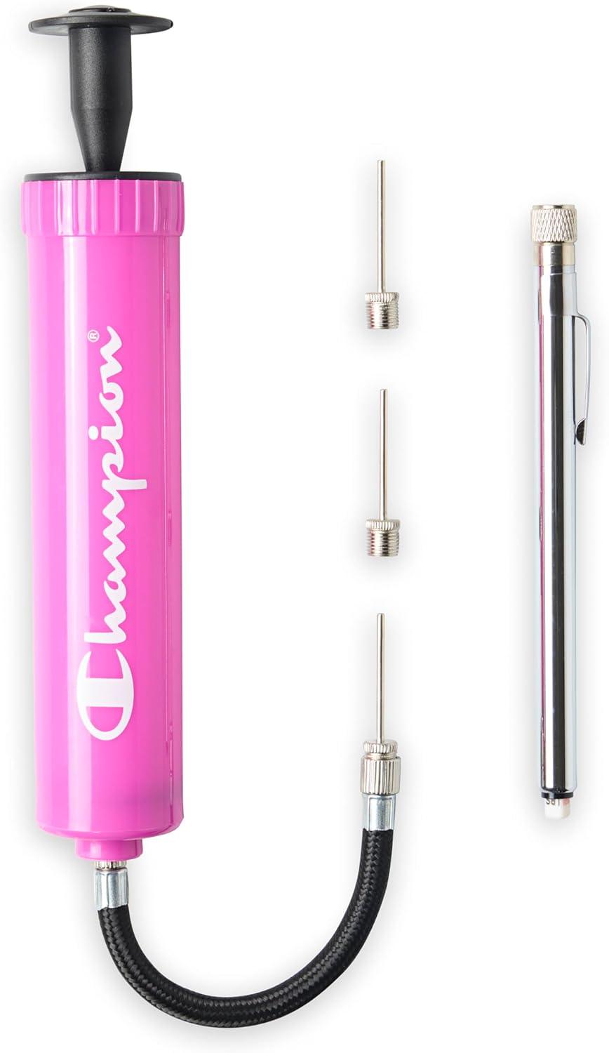 Champion Replacement Ball Pump with Metal Inflation Replacement Needles for Sports Balls with Compact Case, Compatible with Most Pumps for Basketball, Soccer, Football, Volleyball & Yoga Balls(Optic Pink/Black)