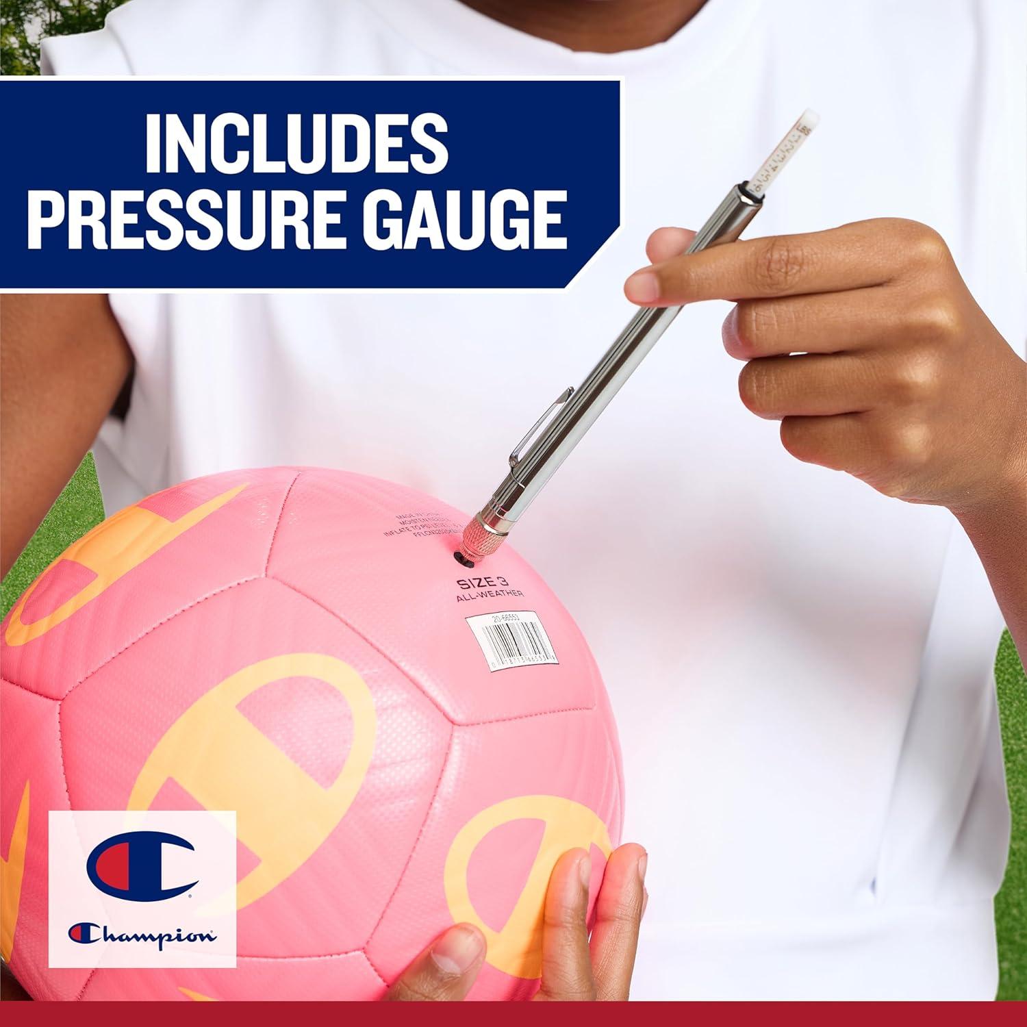 Portable & Lightweight: Compact and easy to carry, this hand pump fits into your sports bag, backpack, or even a side pocket., whether you’re headed to practice, or tournaments. Compatible with Champion Footbals and Soccer Balls (sold separately)