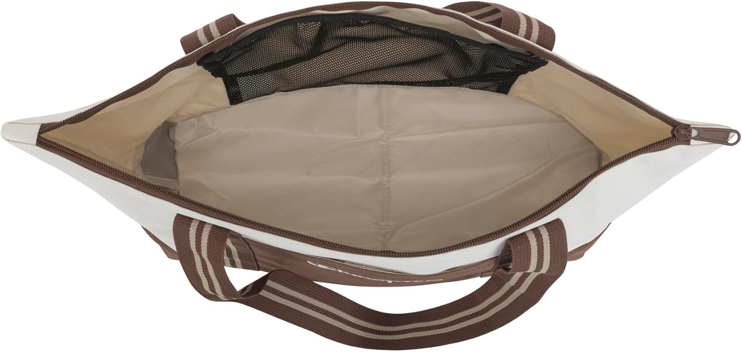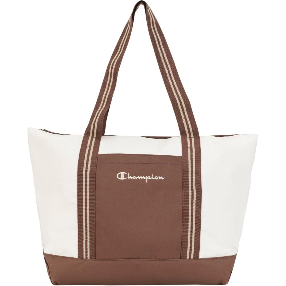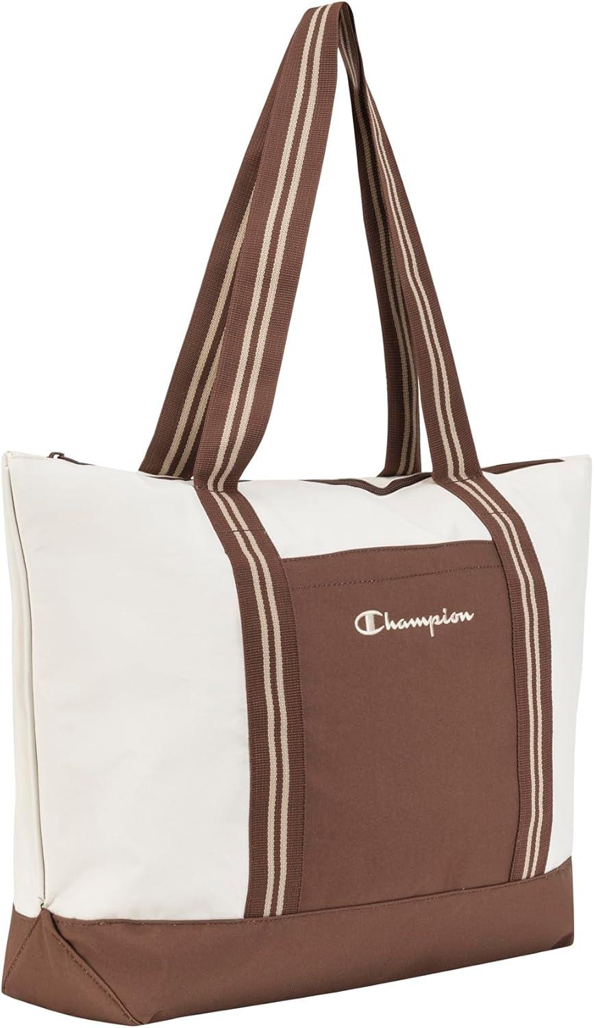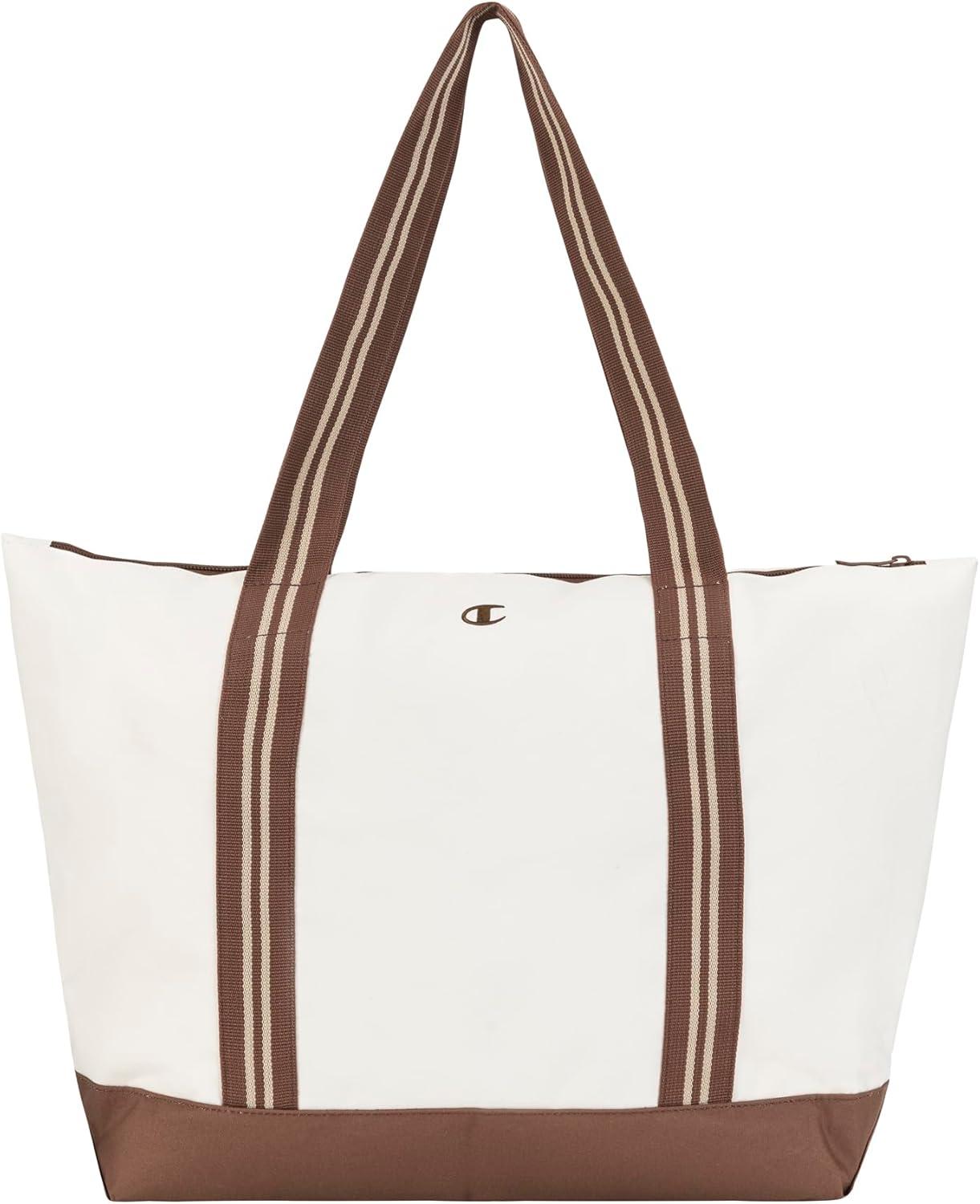 Champion Varsity Tote Bag with Zip Closure and Interior Mesh Pockets for Work, Travel, Daily Use, Natural/Brown(Natural/Brown)