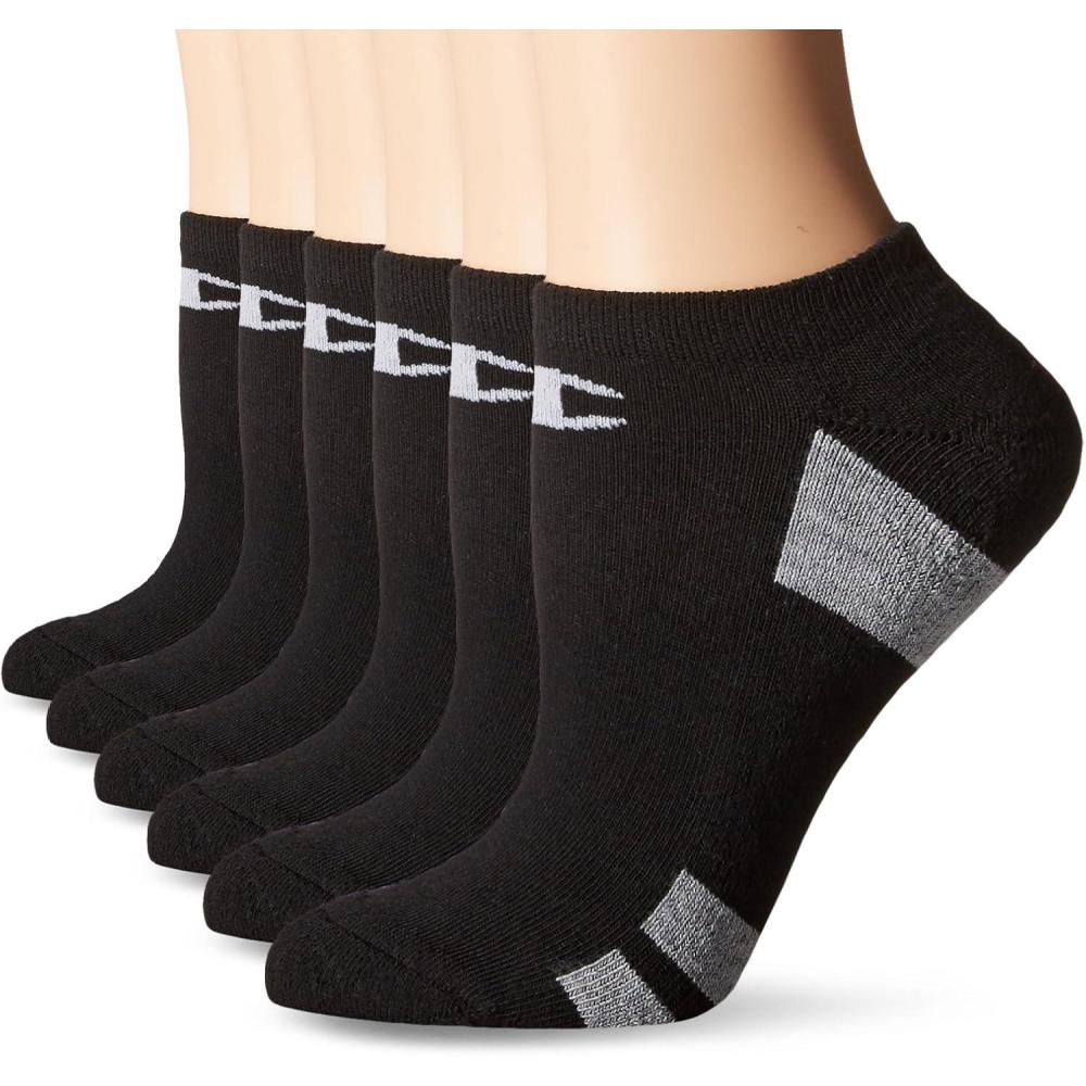 Champion Women’s 6-Pack Low Cut Athletic Socks with Moisture-Wicking, Breathable Stretch (Size 5-9)(Black Toe Logo)