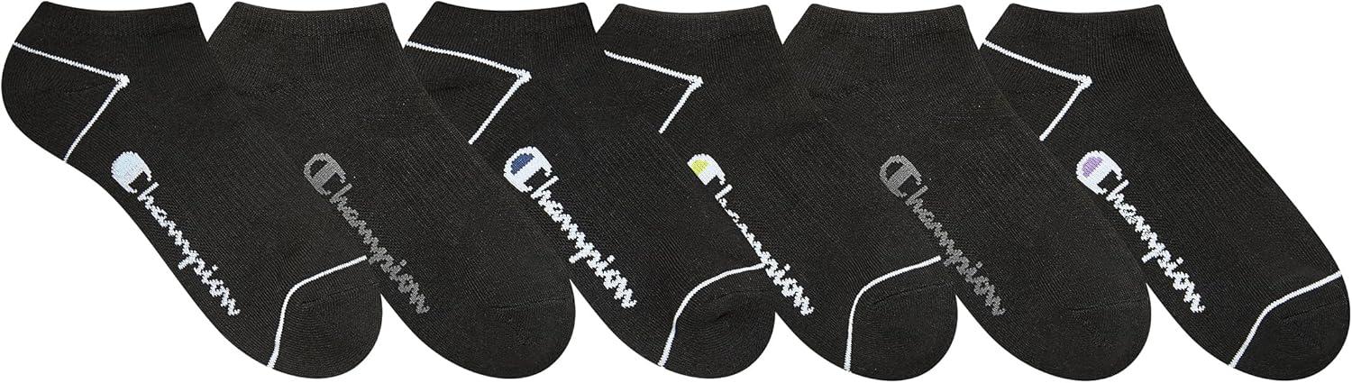 Champion Women’s 6-Pack Low Cut Athletic Socks with Moisture-Wicking, Breathable Stretch (Size 5-9)(Black Toe Logo)