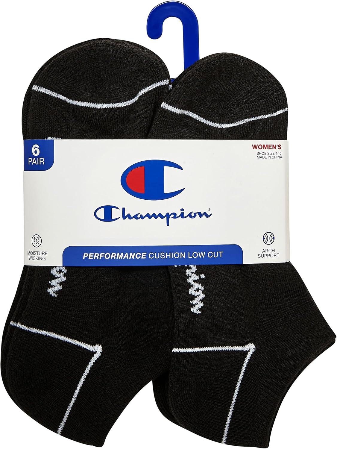 Champion Women's 6-Pack Low Cut Athletic Socks with Moisture-Wicking, Breathable Stretch (Size 5-9)(Black Heel Toe)