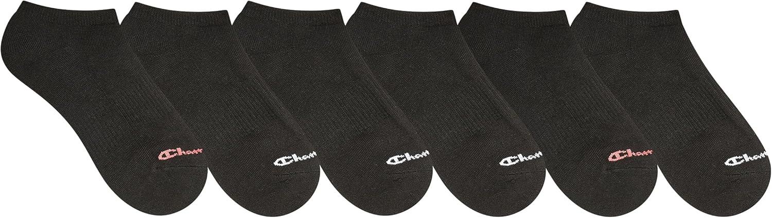 Champion Women’s 6-Pack Low Cut Athletic Socks with Moisture-Wicking, Breathable Stretch (Size 5-9)(Black Toe Logo)