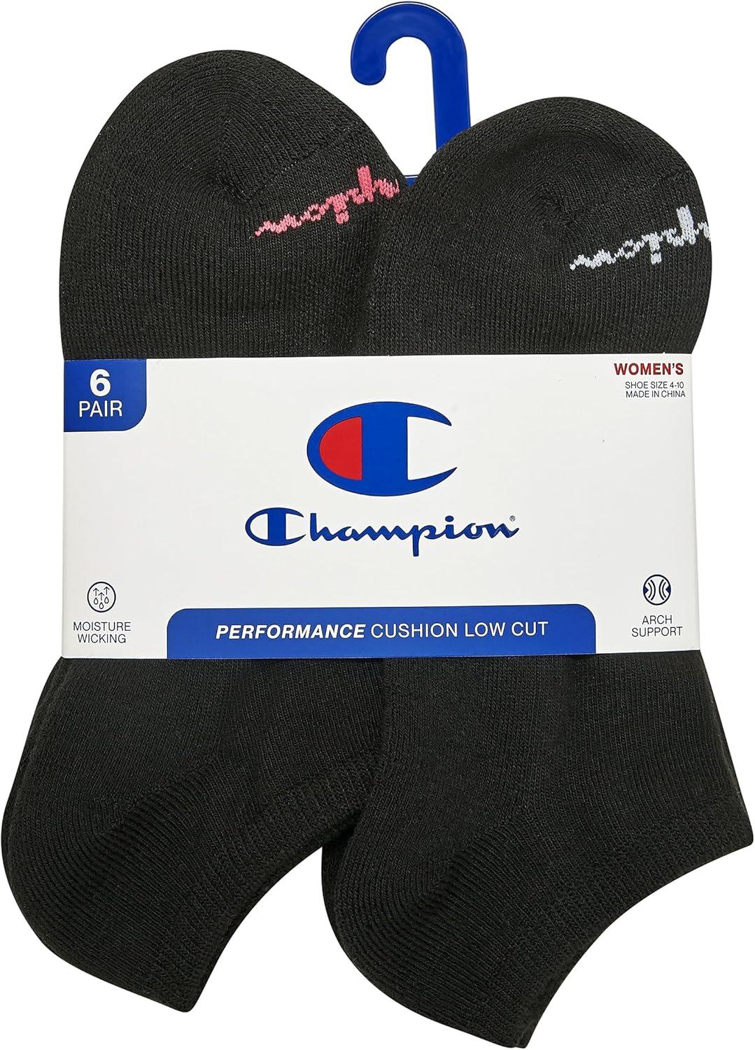Champion Women's 6-Pack Low Cut Athletic Socks with Moisture-Wicking, Breathable Stretch (Size 5-9)(Black Toe Logo)