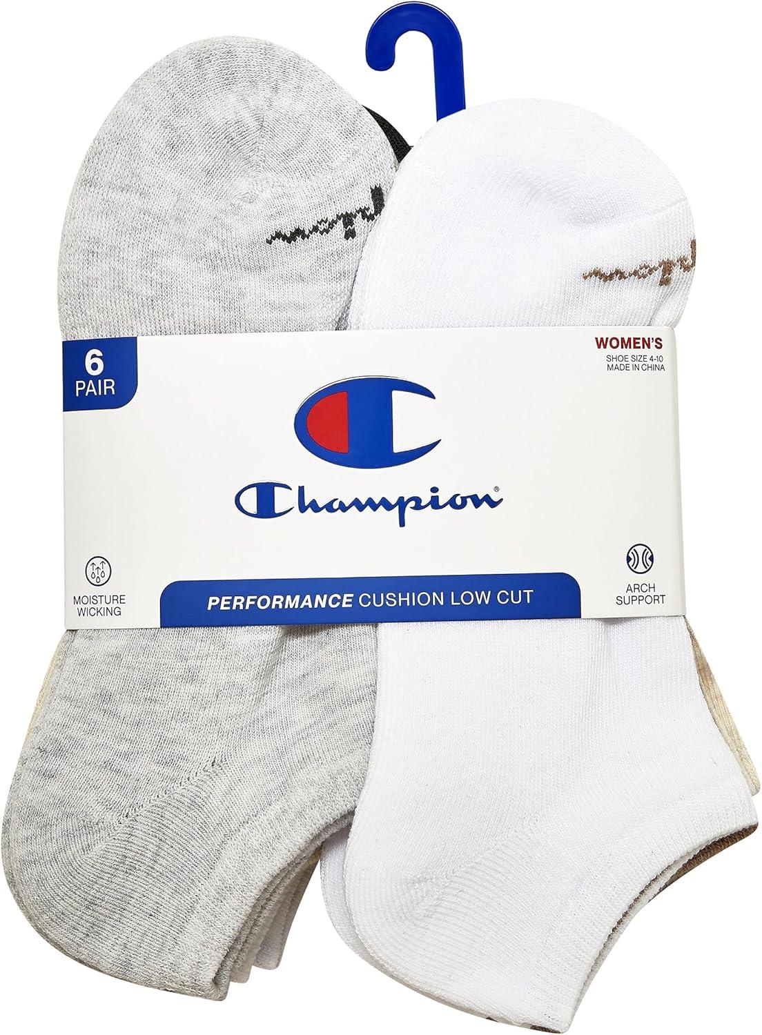 Champion Women's 6-Pack Low Cut Athletic Socks with Moisture-Wicking, Breathable Stretch (Size 5-9)(Grey/Neutral Assorted)