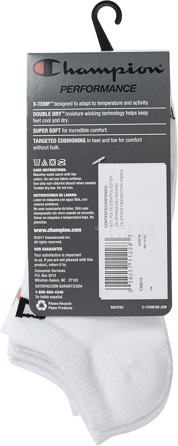 Champion Women’s 6-Pack Low Cut Athletic Socks with Moisture-Wicking, Breathable Stretch (Size 5-9)(White – Toe Logo)