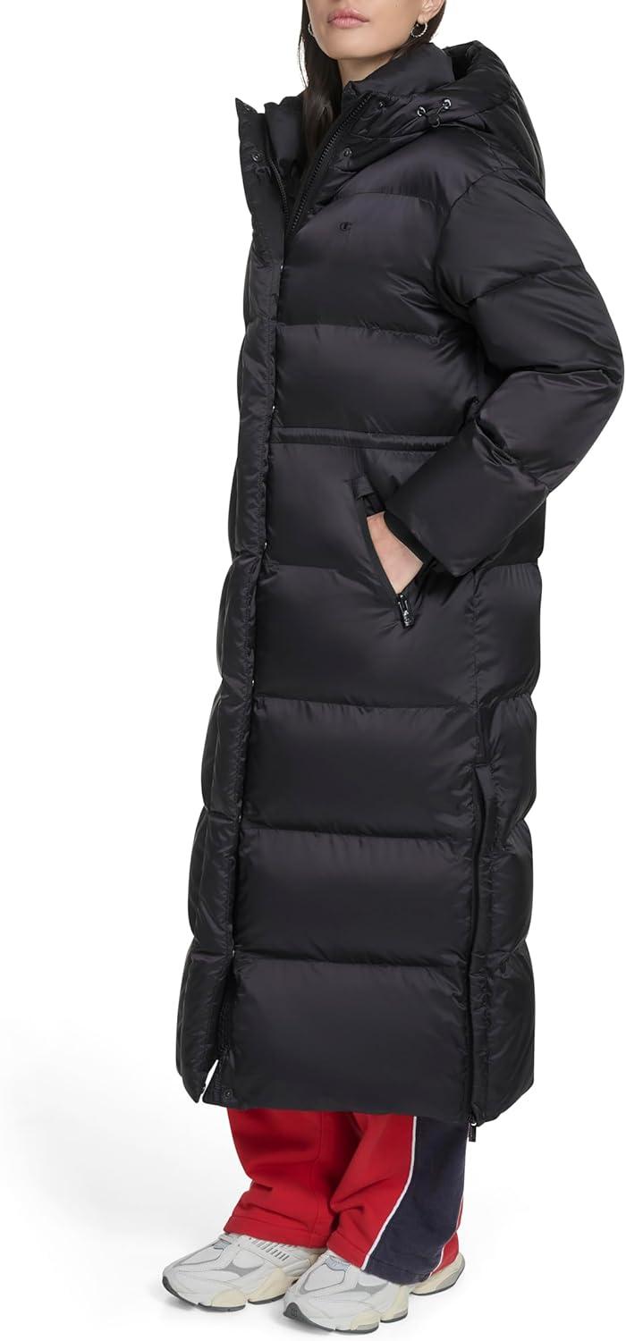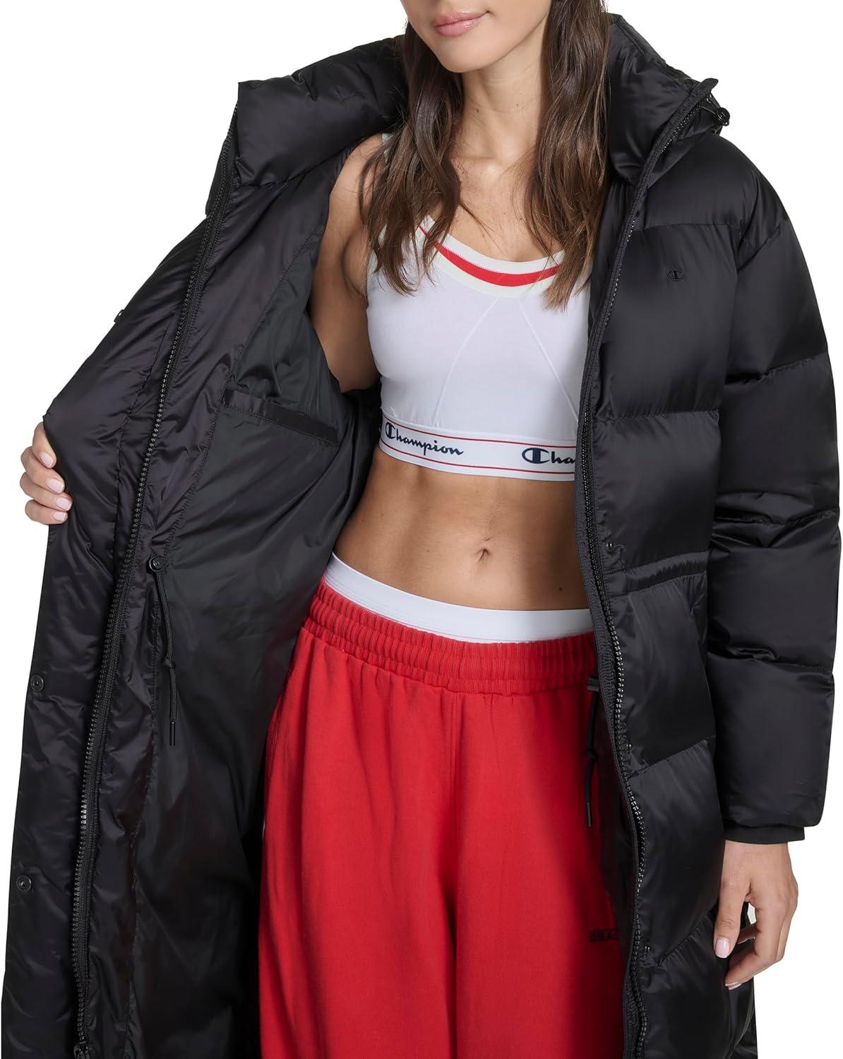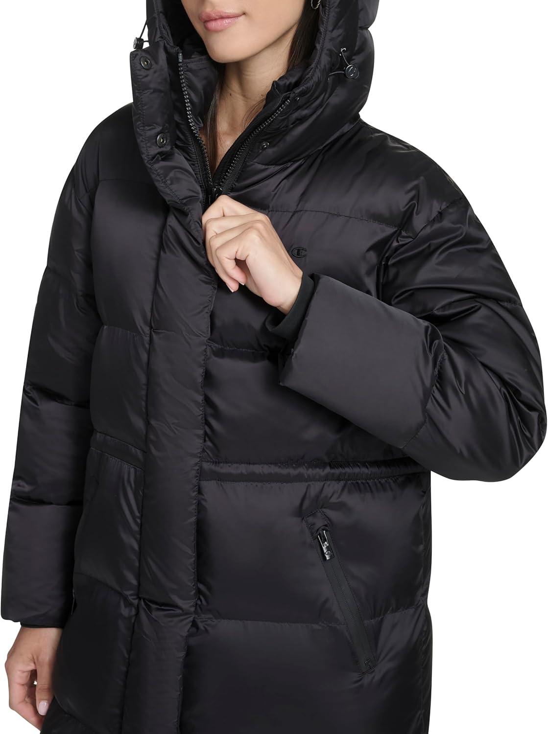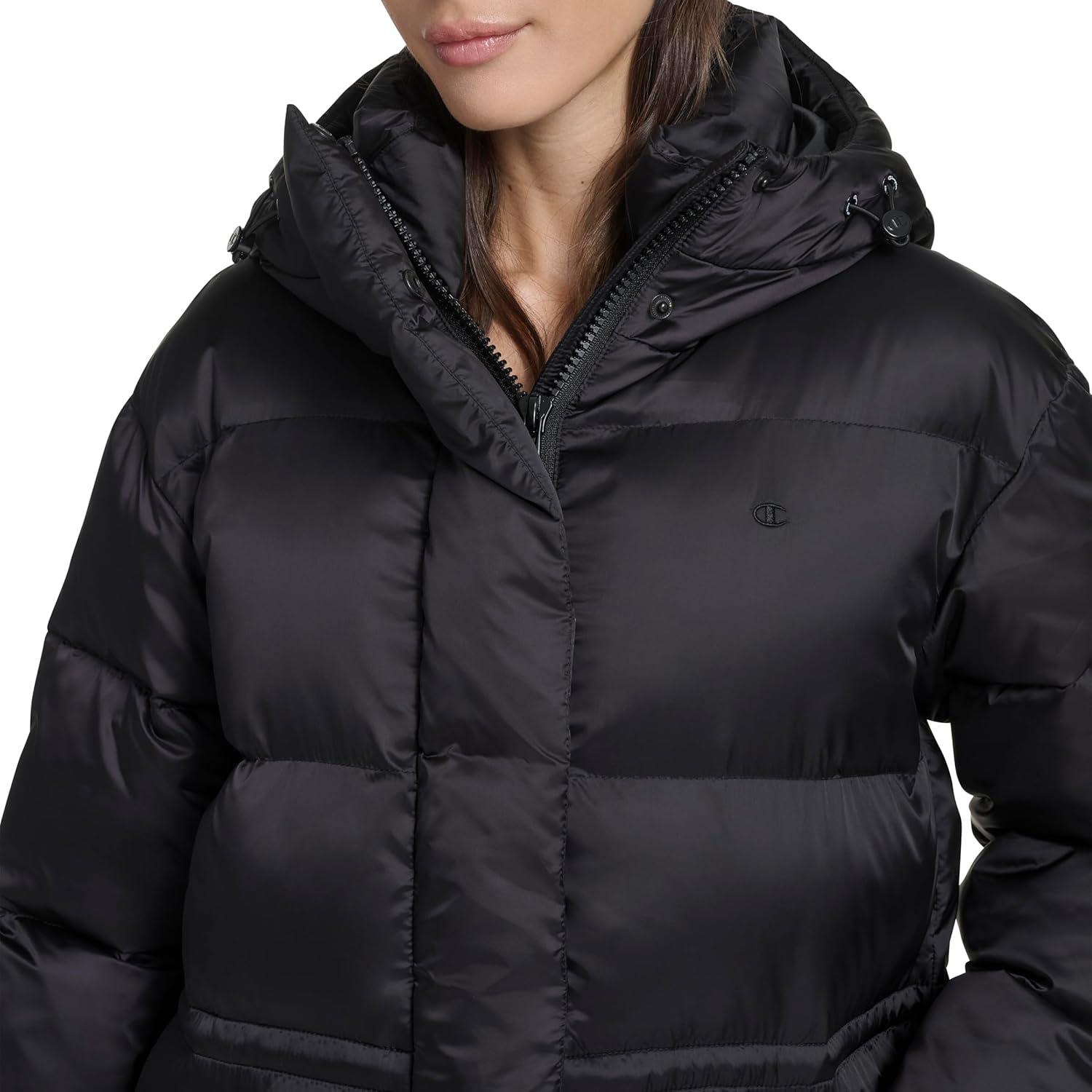 Brave the cold in elevated style with the Champion Women's Cinch Waist Long Hooded Puffer. Designed for maximum coverage and warmth, this extra-long jacket features smart details like side zipper vents and an adjustable waist for comfort and mobility without sacrificing shape.