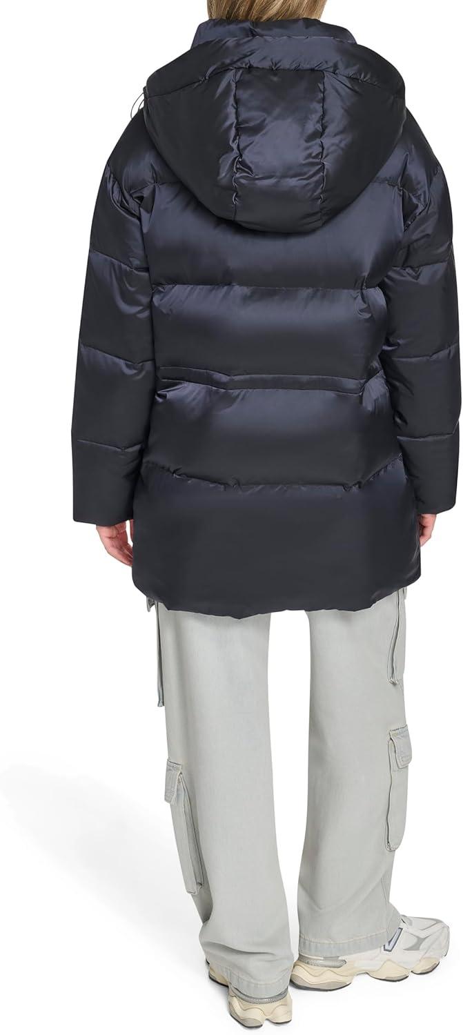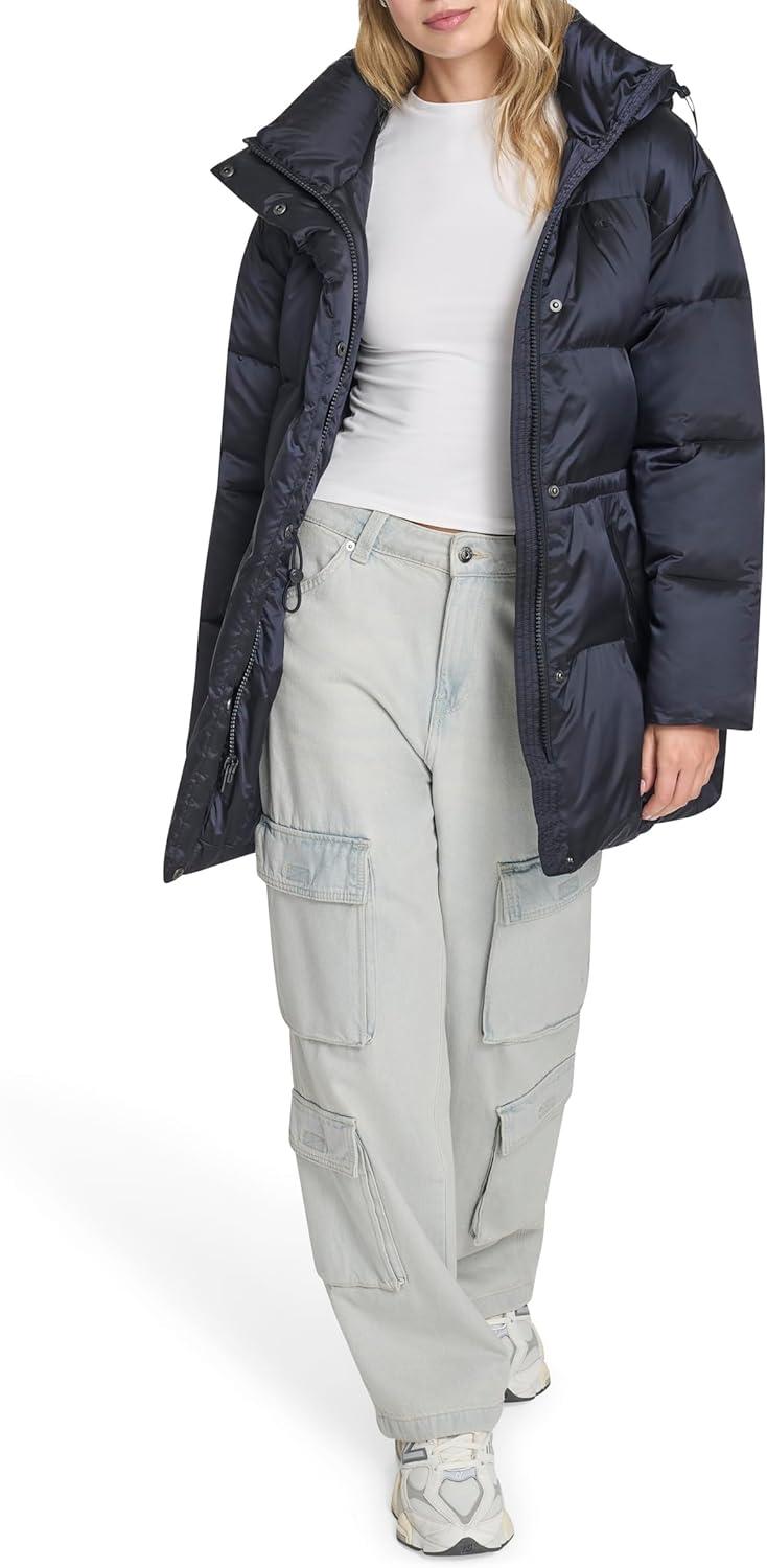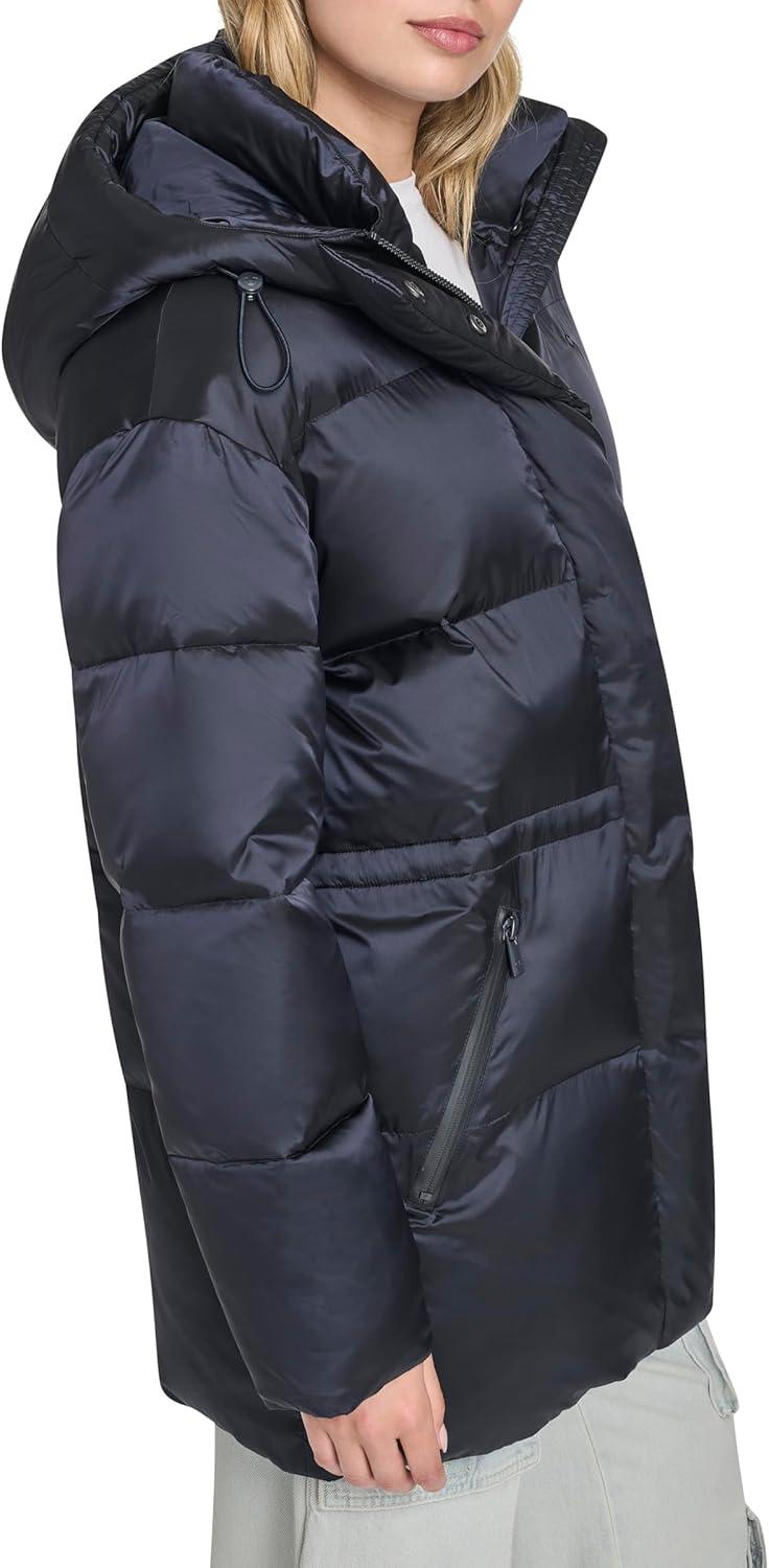 Champion womens Cinch Waist Quilted Puffer Jacket(Navy)
