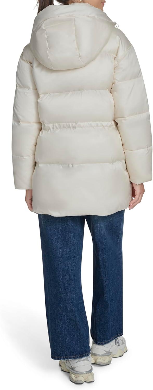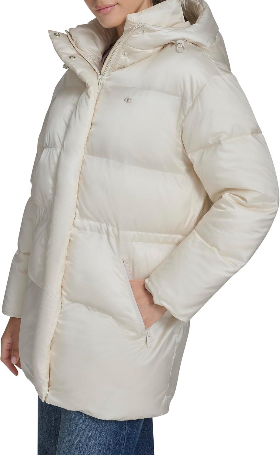 Champion womens Cinch Waist Quilted Puffer Jacket(White)