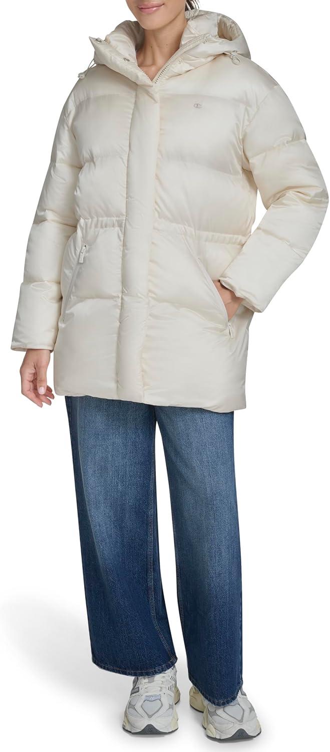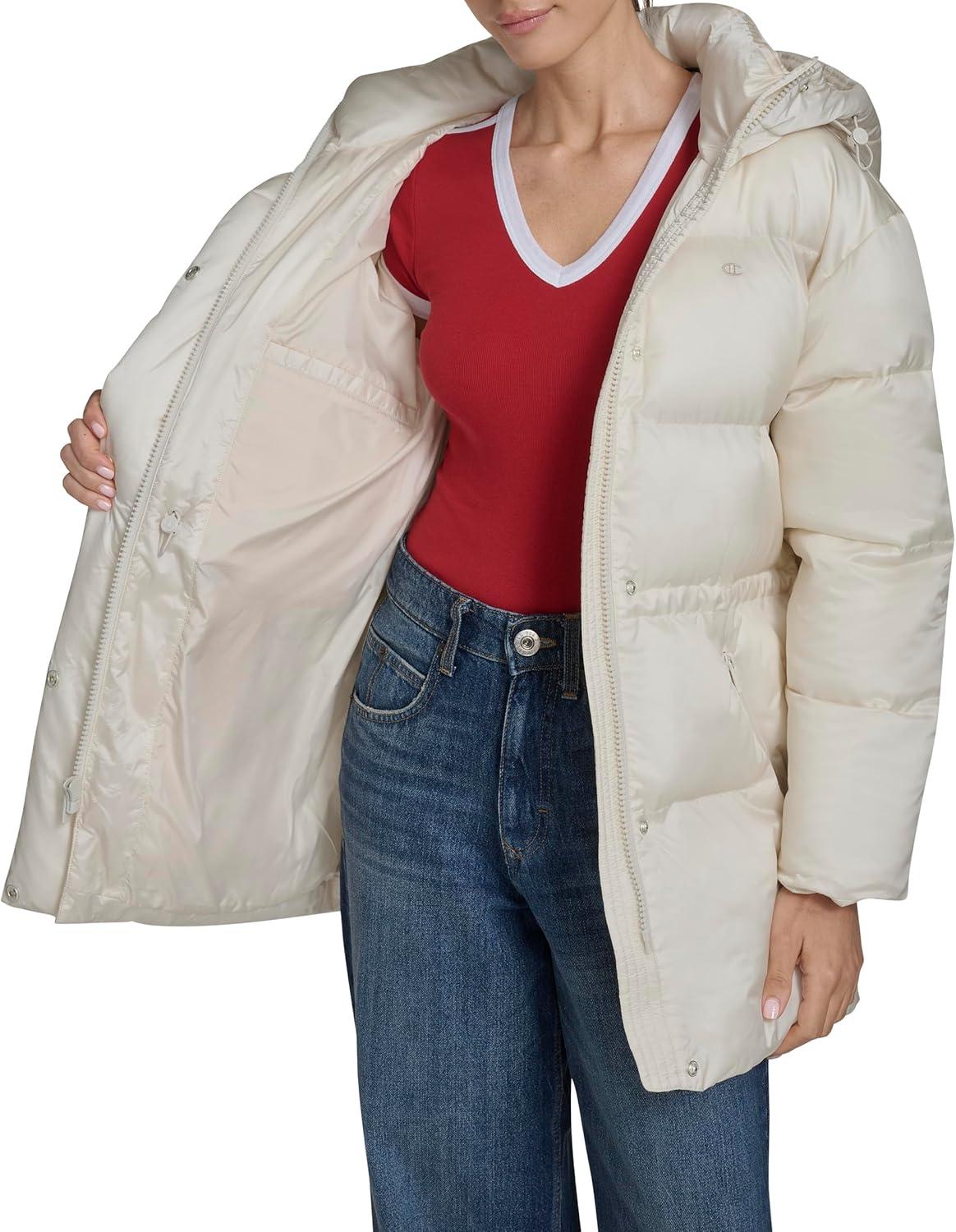 The Champion Women's Cinch Waist Quilted Puffer Jacket blends functionality with flattering style. Designed to keep you warm and comfortable, this jacket features adjustable details for a customizable fit and sleek silhouette.