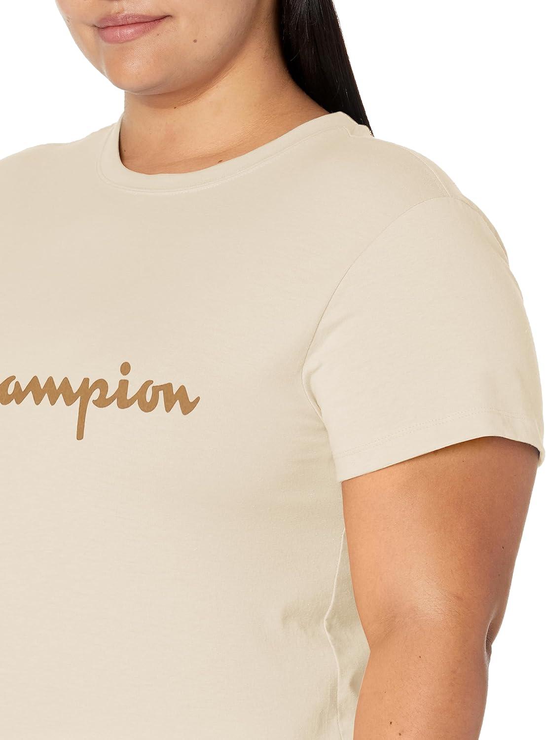 Champion Women’s Classic Short Sleeve Graphic T-Shirt, Standard Fit, Script Logo(Fresh Skin Tan Script)