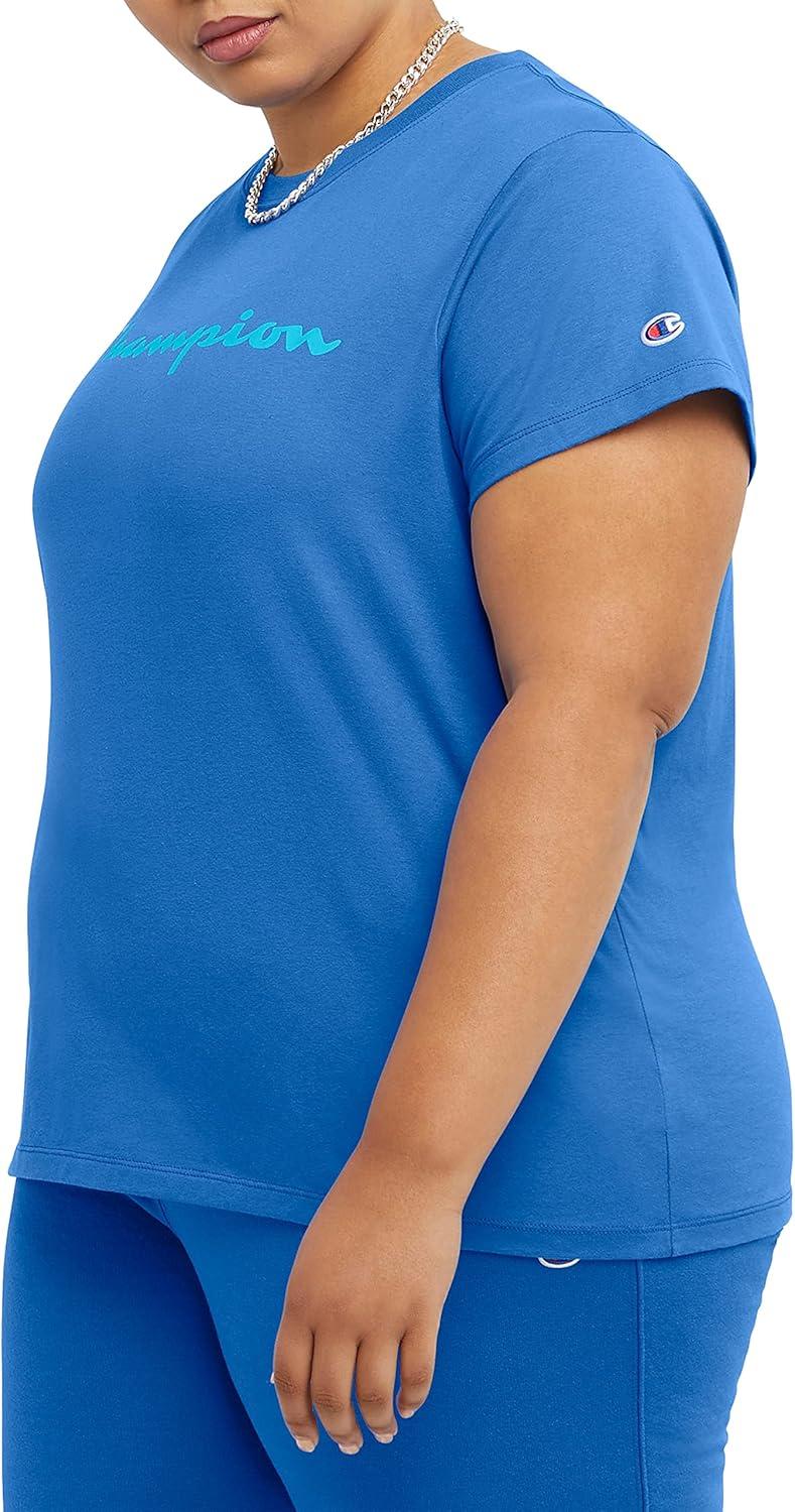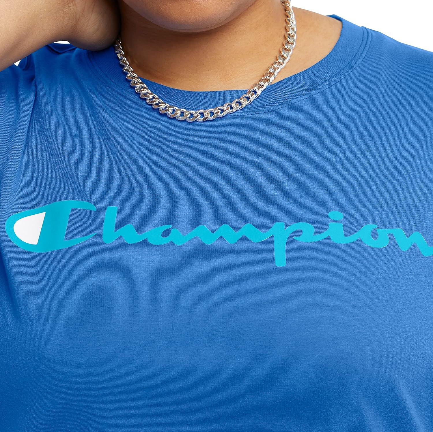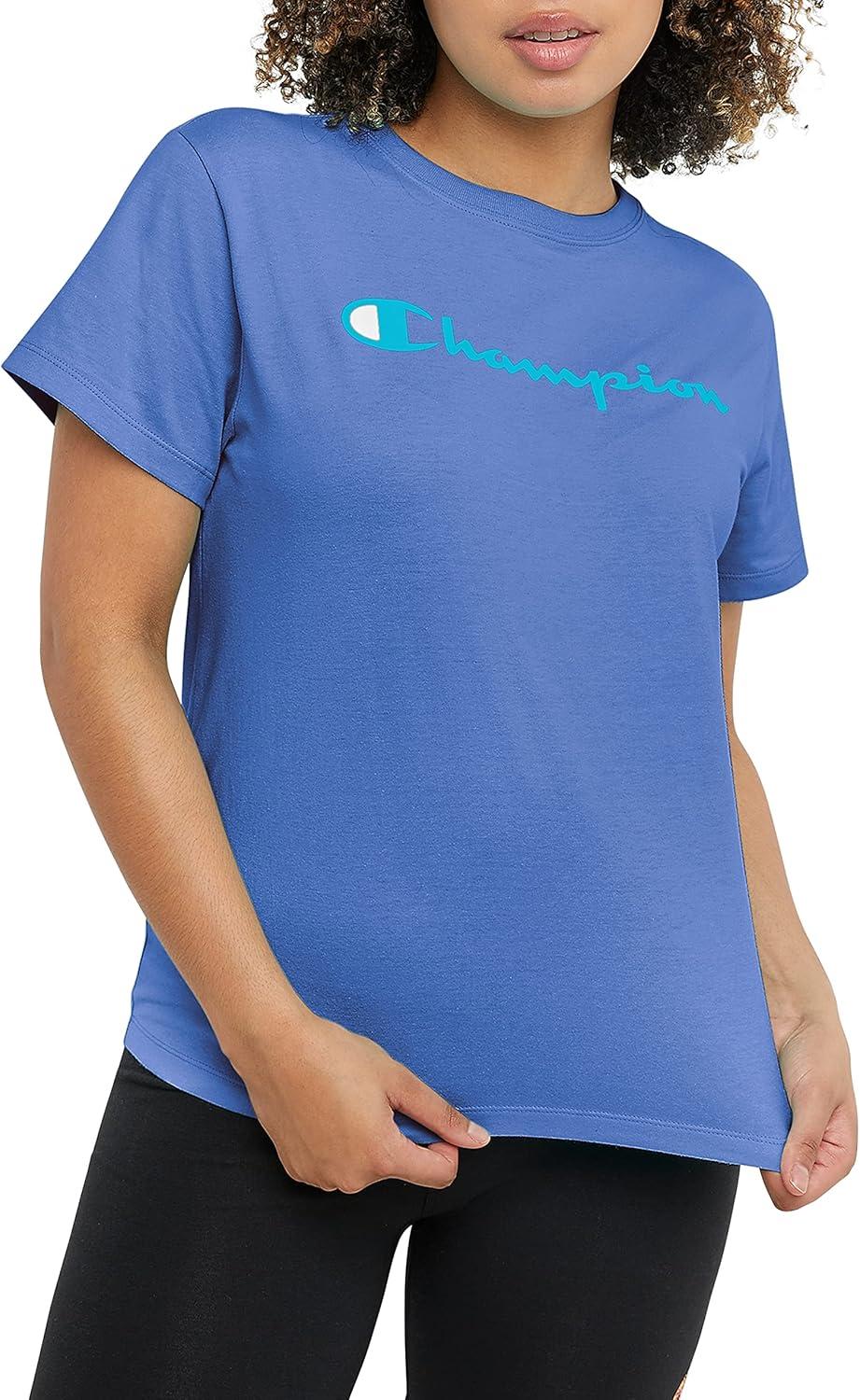 Champion Women’s Classic Short Sleeve Graphic T-Shirt, Standard Fit, Script Logo(Odyssey Script)