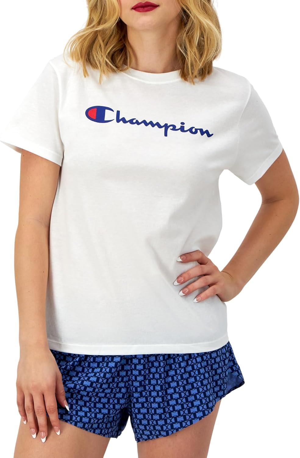RETRO SCRIPT MEETS CLASSIC TEE. This versatile yet classic crewneck t-shirt is great on its own as it is layered under your best Champion jacket or hoodie. It has a classic fit that's not too tight or loose, skimming easily over the body to flatter your figure. This casual crewneck tee is made from a soft cotton blend, making it extra comfortable and just the right weight. It's detailed with a sturdy, ribbed collar and decorated with the classic signature script, offering a timeless look. Finished with the iconic C logo on the sleeve and comes in tons of colors to match your every mood.