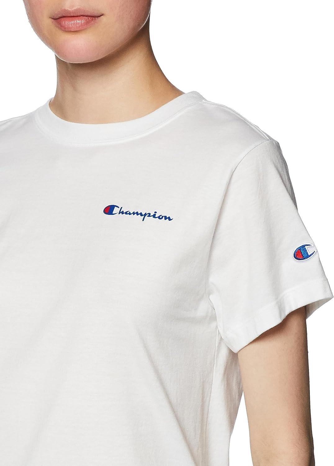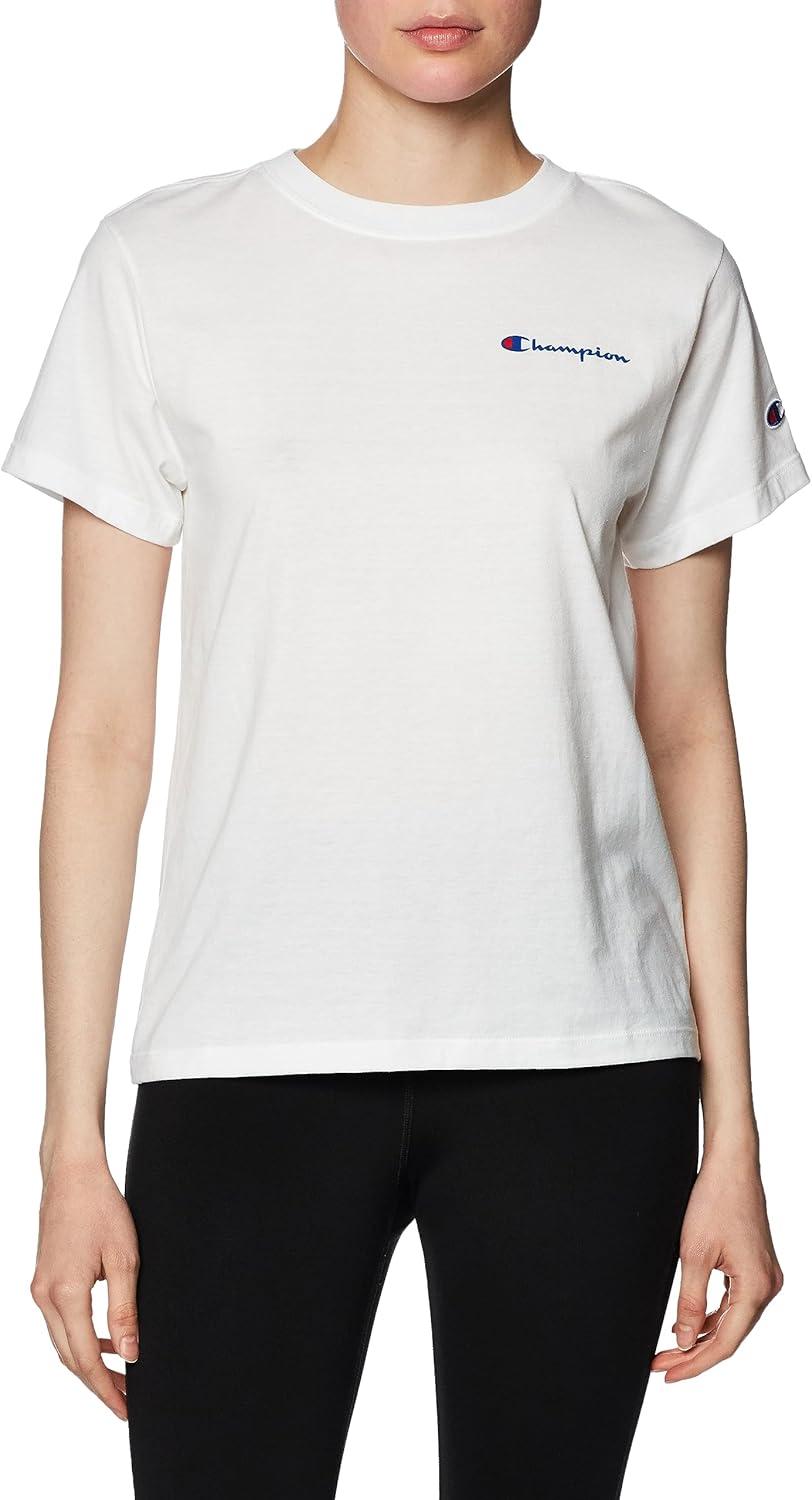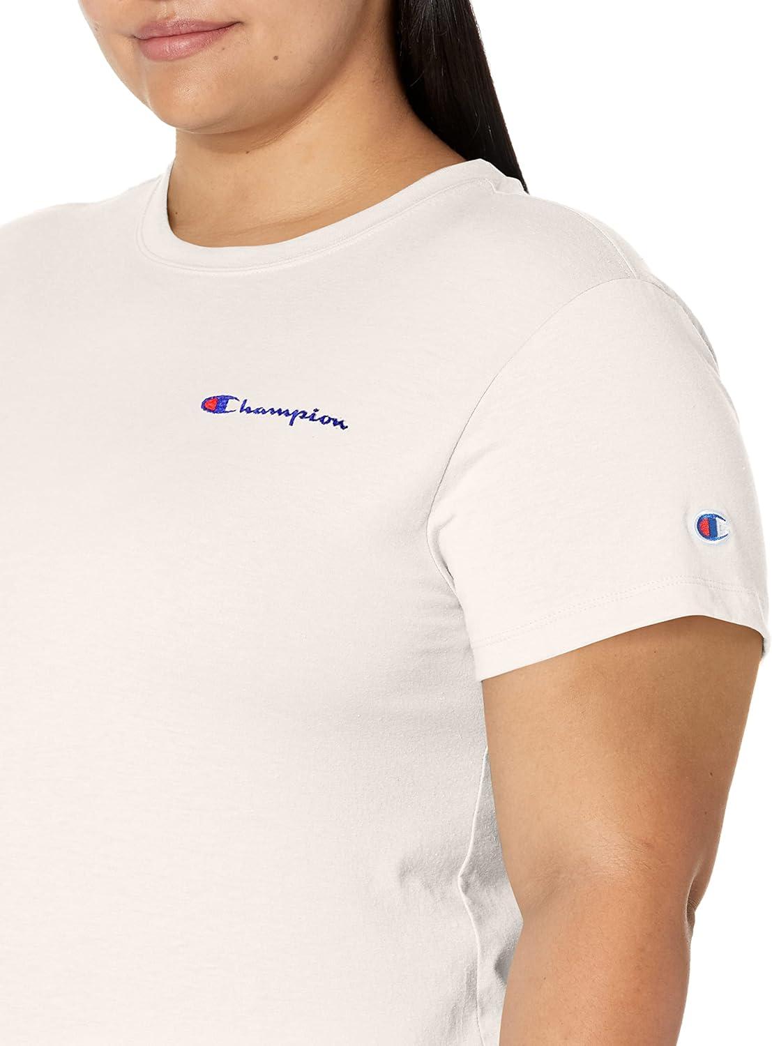 Champion Women’s Classic Short Sleeve Graphic T-Shirt, Standard Fit, Script Logo(White Small Script)