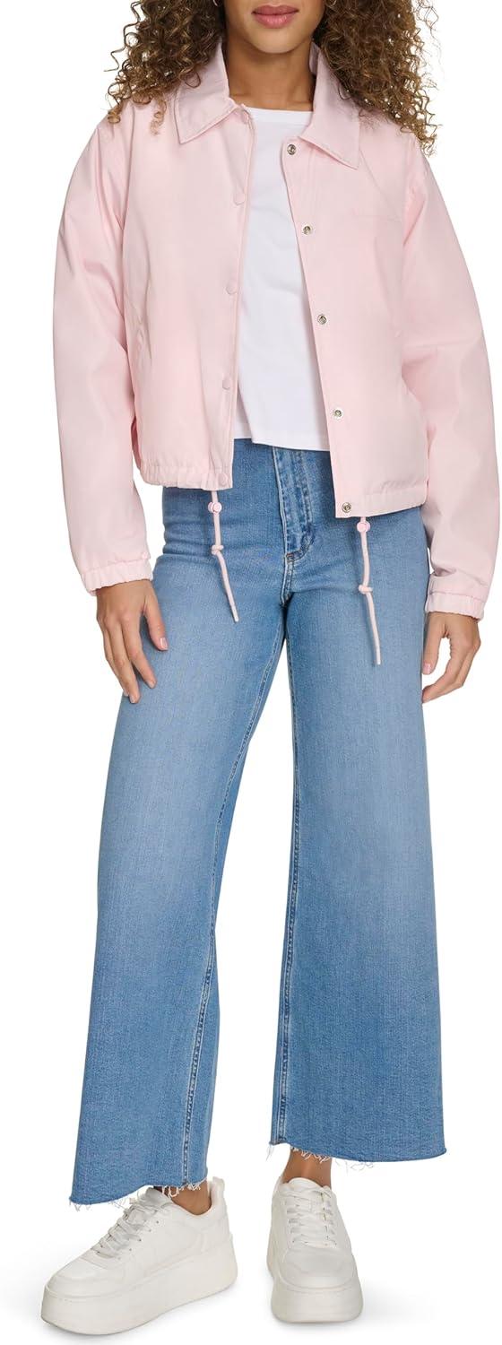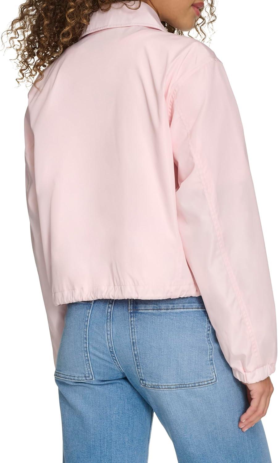 Snap Front Closure: Center front snap closure for easy wearing and a secure, adjustable fit. Practical Welt Pockets: Two lower welt pockets provide convenient storage for essentials while maintaining a sleek silhouette. Elastic Cuffs and Waistband: Elastic detailing at the cuffs and waistband ensures a snug, flattering fit and keeps out the elements. Customizable Fit: Draw cord at the hem allows for an adjustable fit, enhancing comfort and style. Sleek Satin Finish: Lightweight satin fabric gives the jacket a smooth, stylish look with a soft sheen.