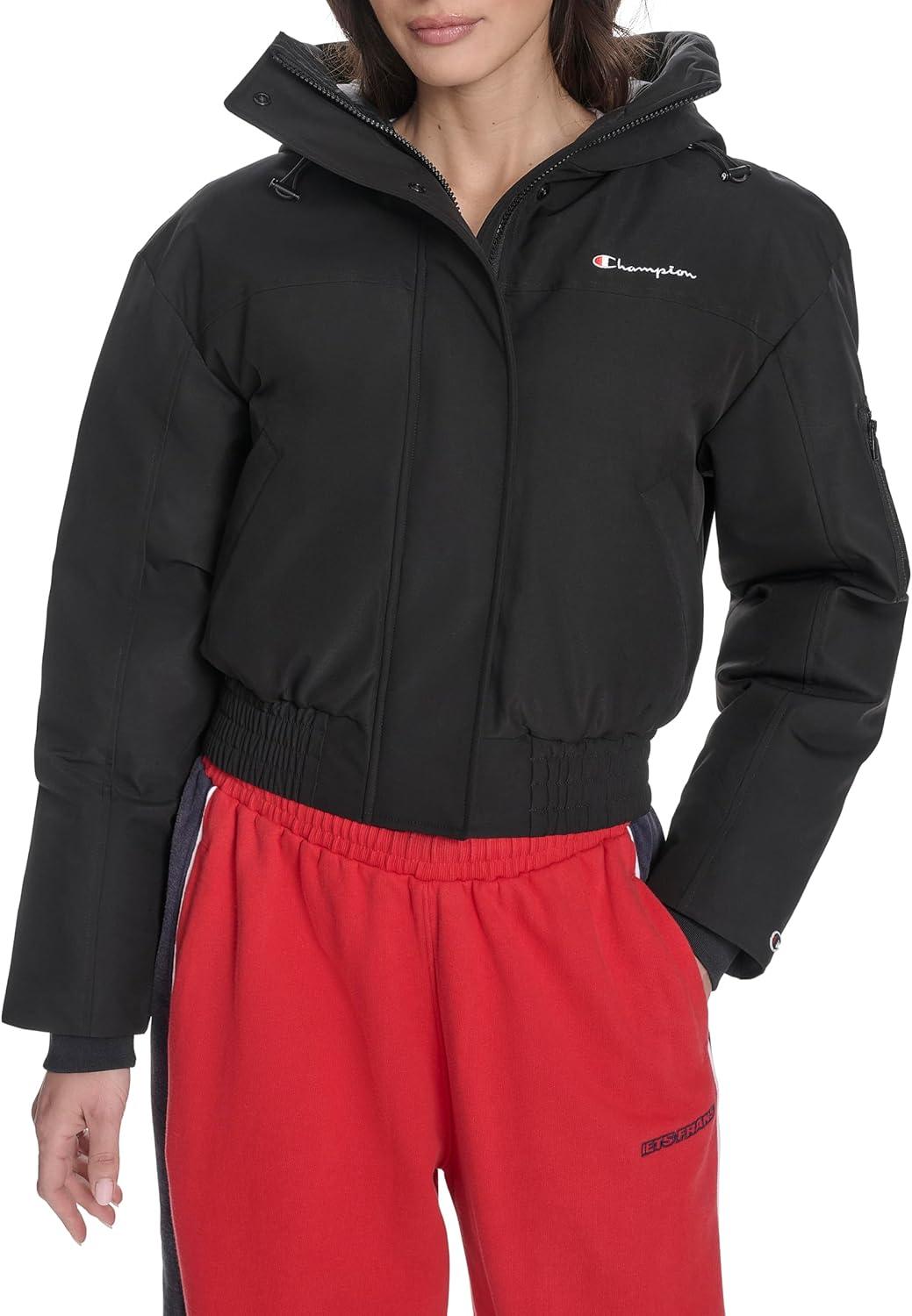 Hit the slopes or the streets in style with the Champion Women's Cropped Hooded Ski Bomber. This sporty, cold-weather essential combines warmth and function with a bold, cropped silhouette and signature Champion detailing.