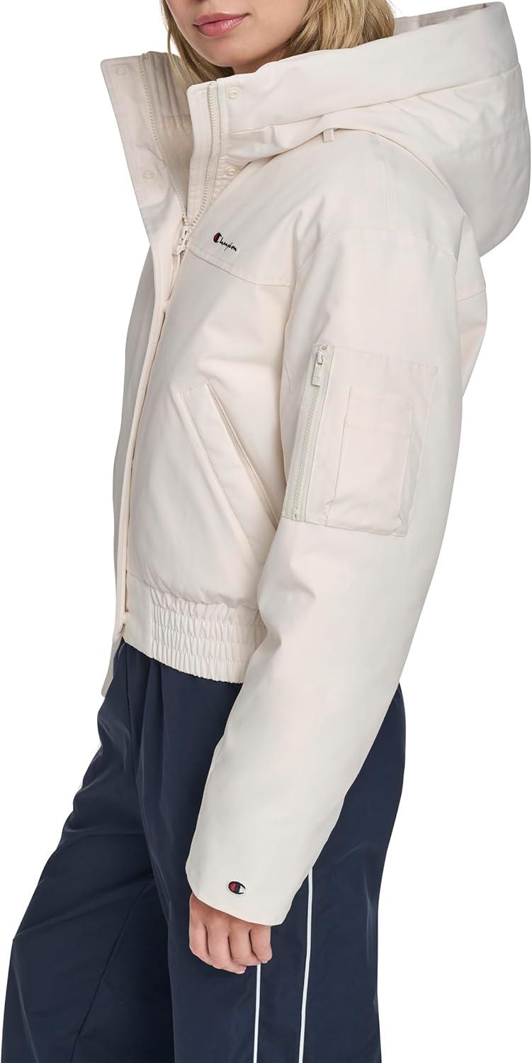 Champion womens Cropped Hooded Ski Bomber(White)