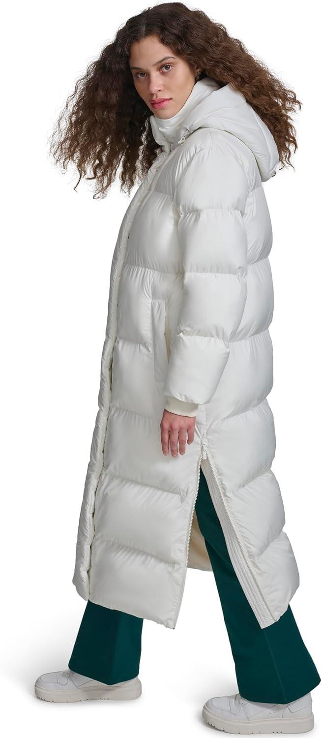 Embrace the winter season in style with this women's extra long quilted parka, designed to keep you warm from head to toe. The sleek silhouette is enhanced by a center front zipper with a snap placket, while the zipper side vents allow for easy movement and a customizable fit. With its fleece-lined pockets, storm cuffs, and adjustable hood, this parka is the perfect blend of comfort and elegance, highlighted by the subtle Champion tonal script logo at the chest.