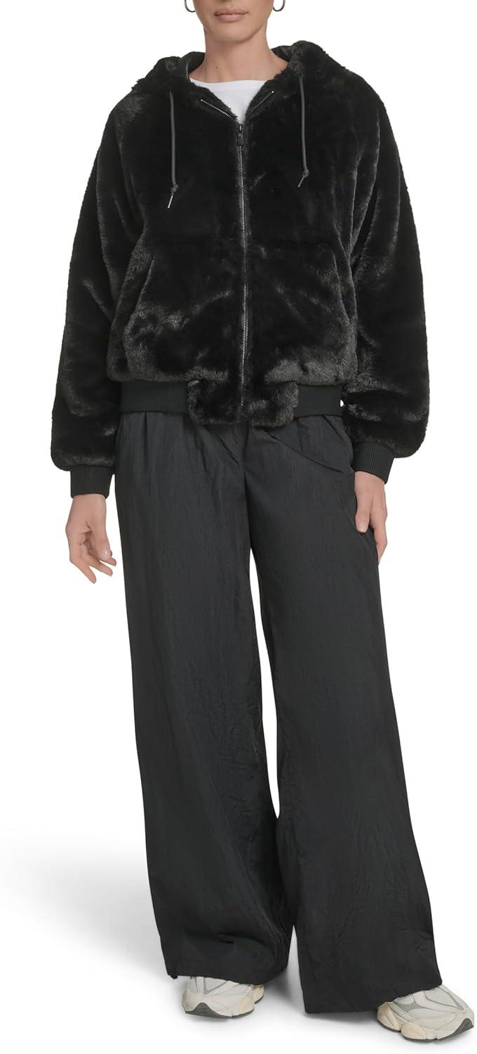 imageChampion womens Faux Fur Hoody Bomber JacketBlack