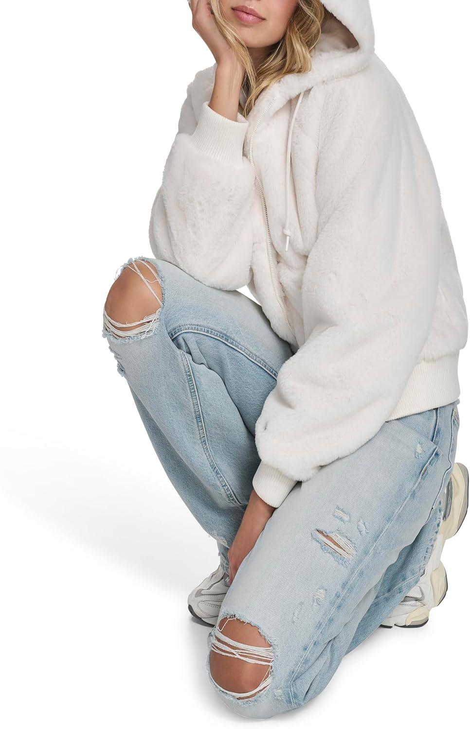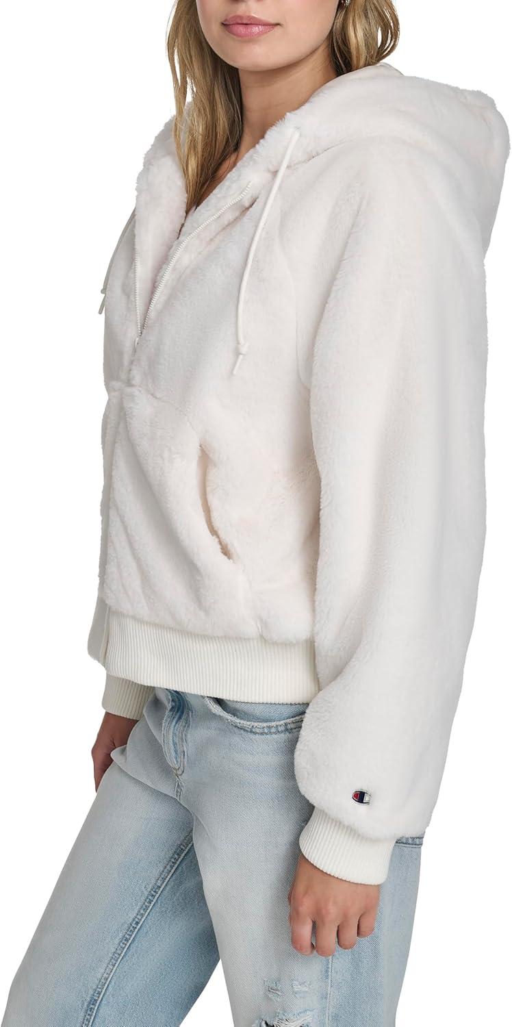 Stay cozy and stylish with the Champion Women's Faux Fur Hoody Bomber Jacket. This ultra-soft jacket combines sporty flair with plush comfort, perfect for everyday wear in chilly weather.