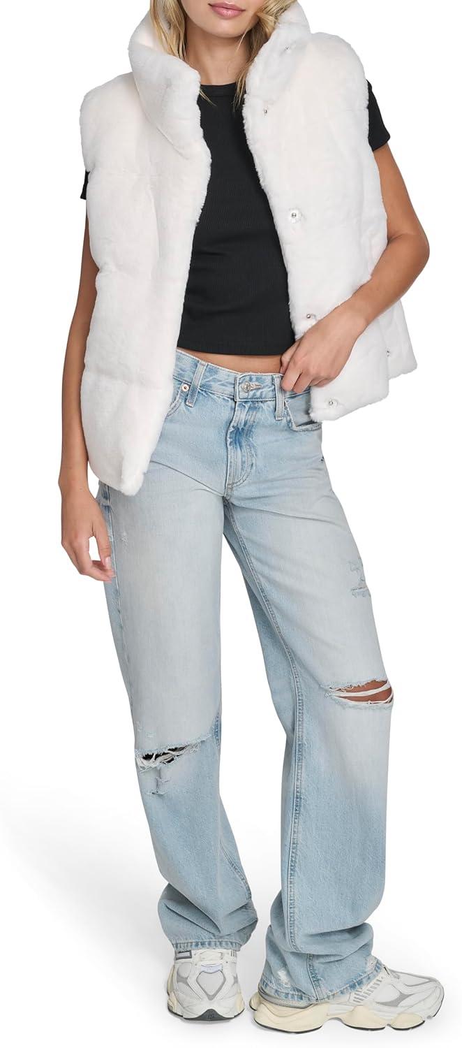 Champion womens Faux Fur Stand Collar Vest(Cream)