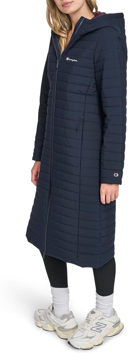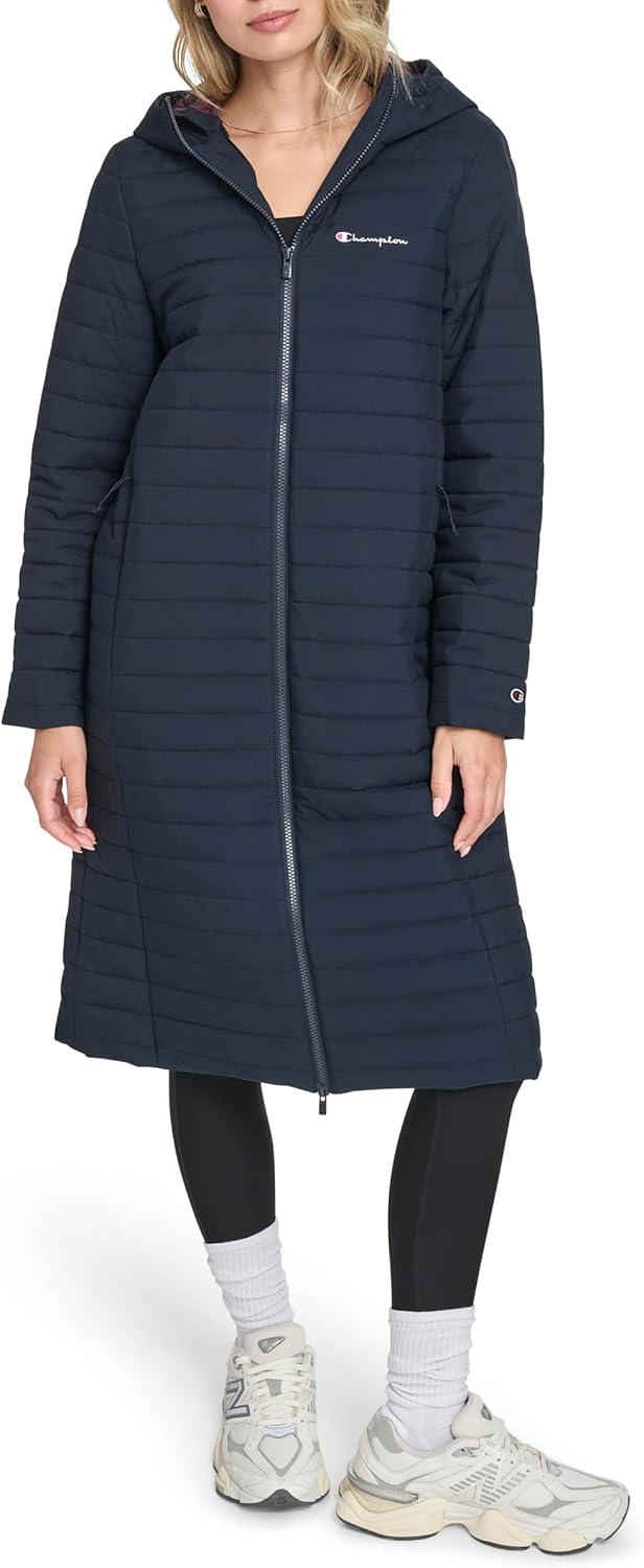 Champion womens Lightweight Long Hooded Puffer(Navy)