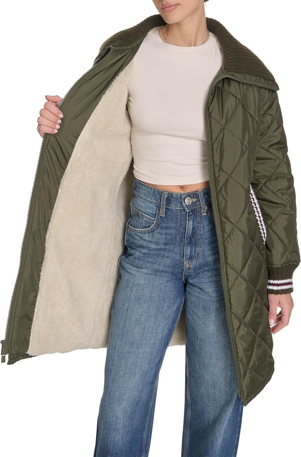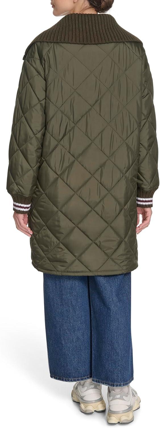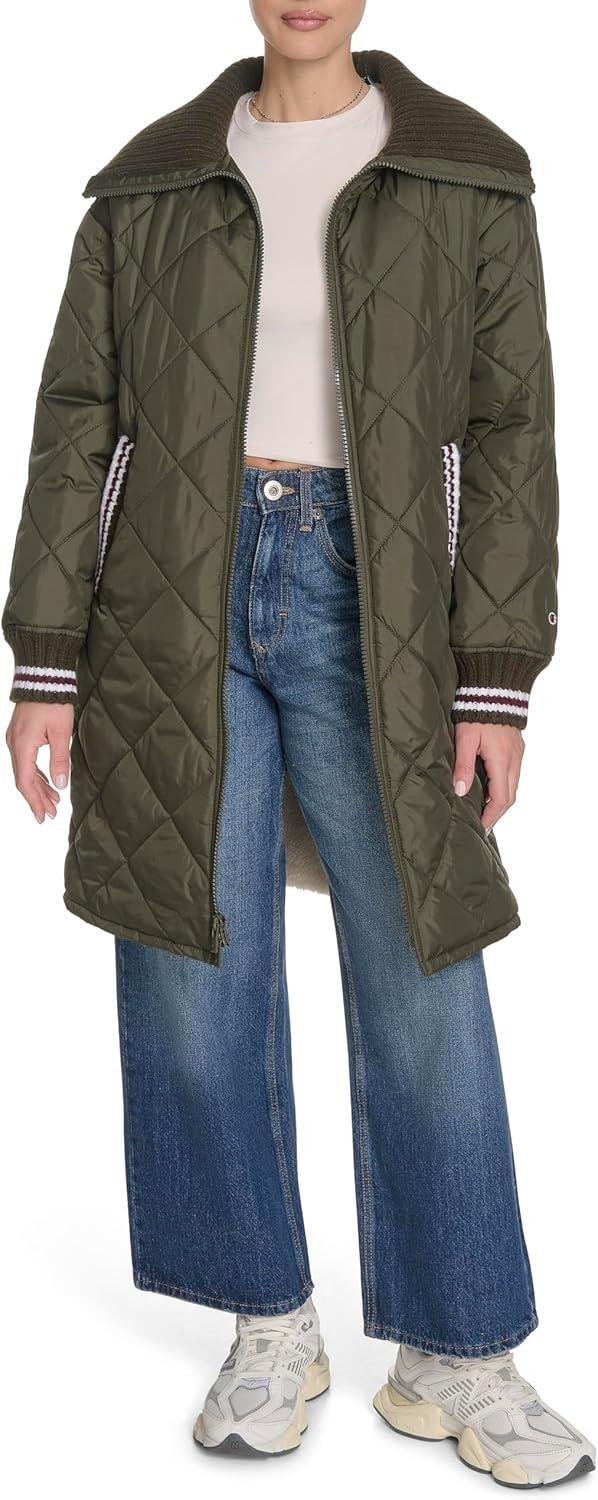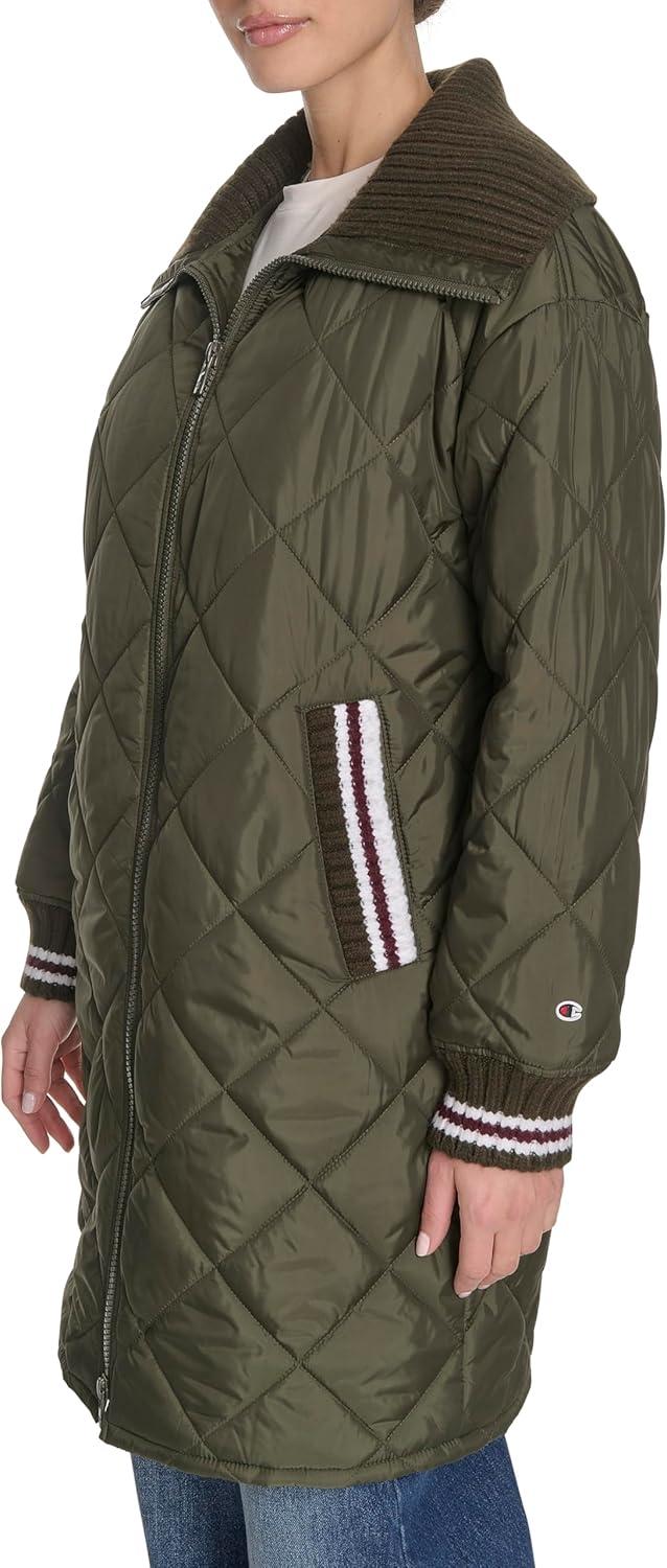 Champion womens Mid-length Diamond Quilted Shawl Collar Jacket(Olive)