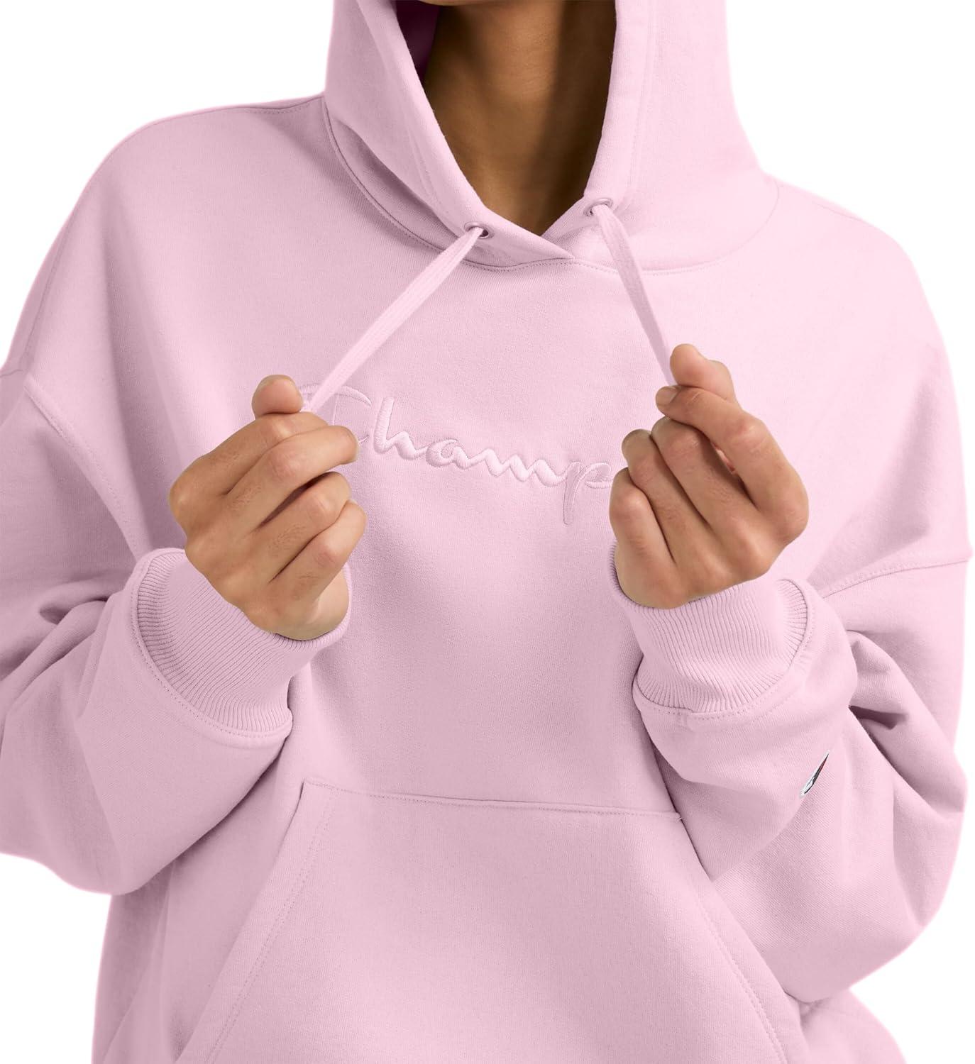 Champion Women’s Pullover Fleece Hoodie, Loose Fit, Midweight, Script Logo(Ballerina Slipper - Embroidered Script Logo)