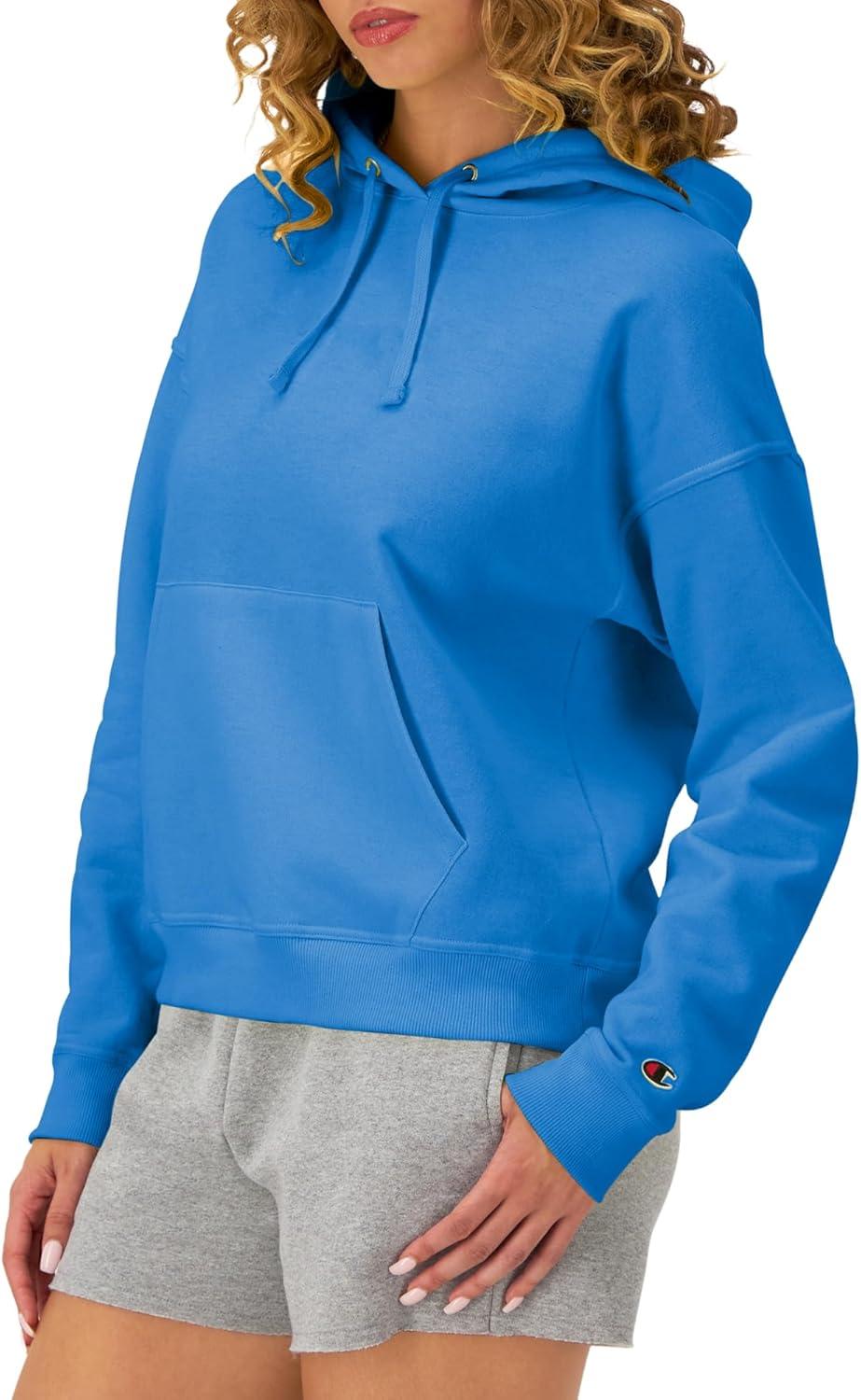 Champion Women’s Pullover Fleece Hoodie, Loose Fit, Midweight, Script Logo(Blue Jay)