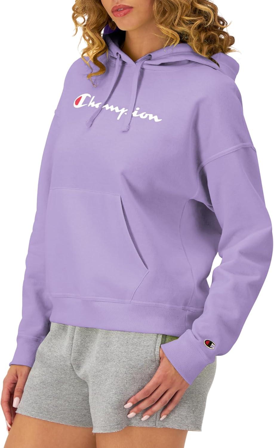 Champion Women’s Pullover Fleece Hoodie, Loose Fit, Midweight, Script Logo(Lavish Lavender Script)