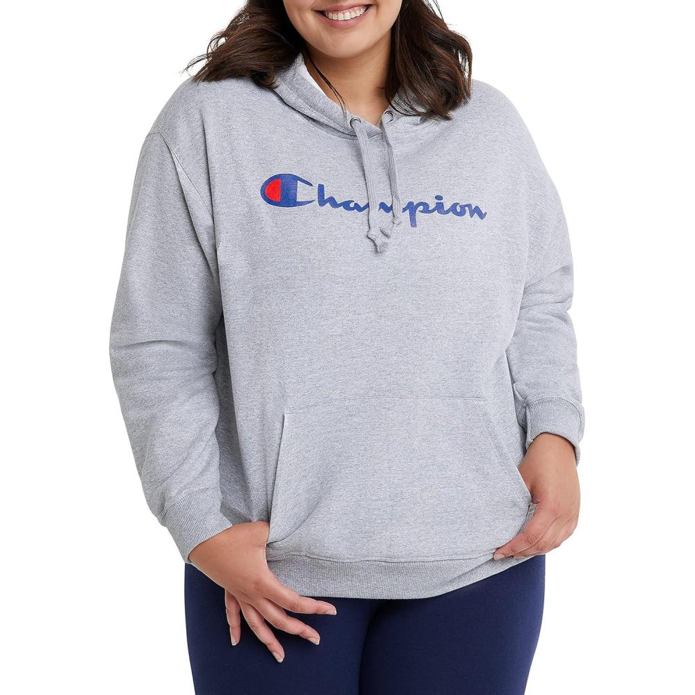 imageChampion Womens Pullover Fleece Hoodie Loose Fit Midweight Script LogoOxford Gray  Classic Script Logo