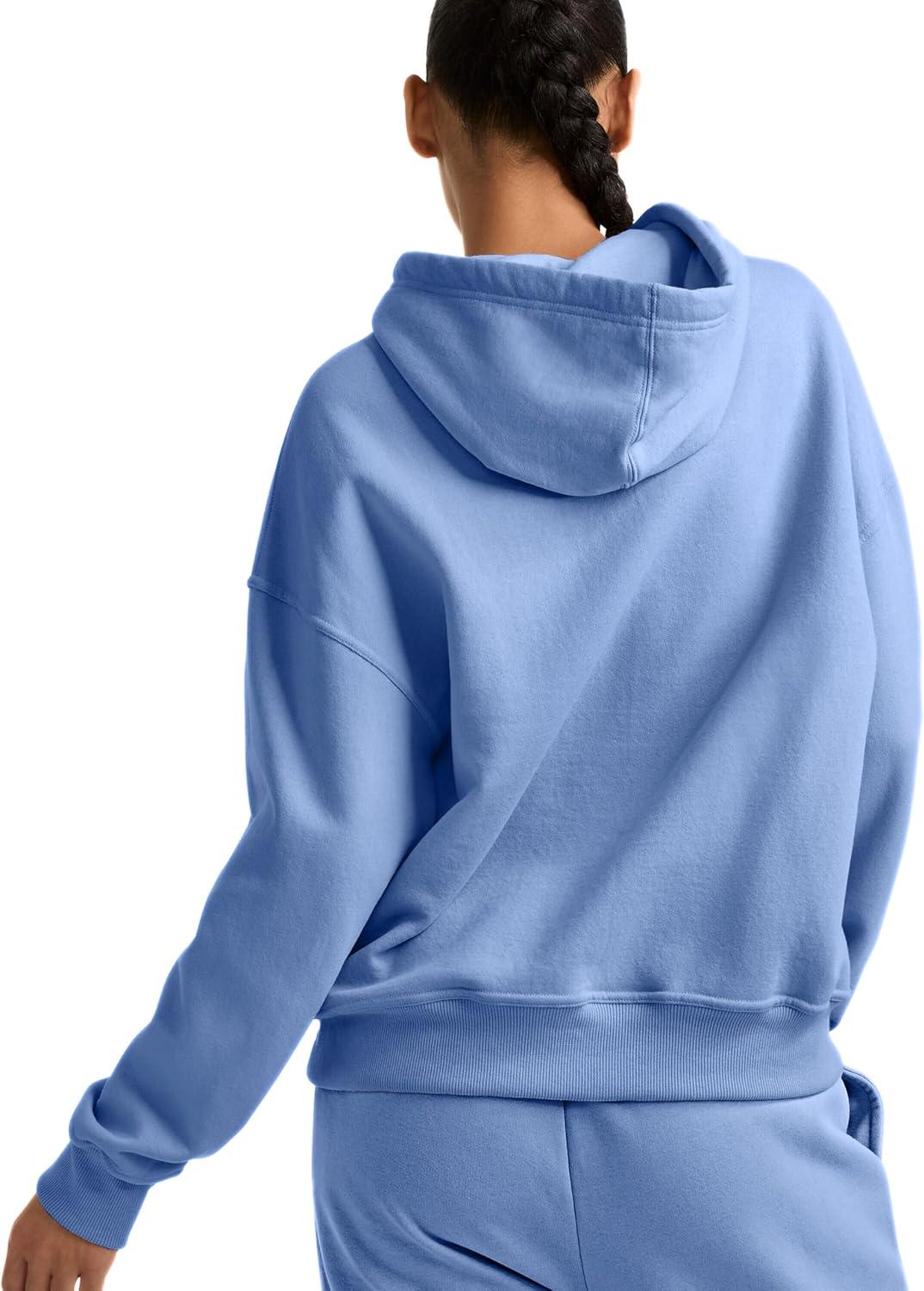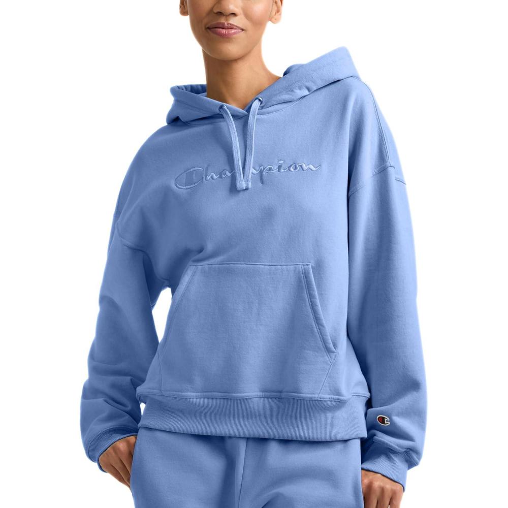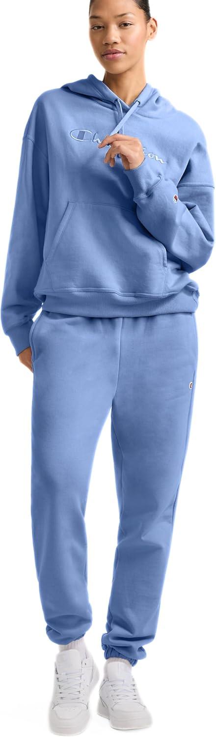 Champion Women’s Pullover Fleece Hoodie, Loose Fit, Midweight, Script Logo(Pewter Blue - Embroidered Script Logo)