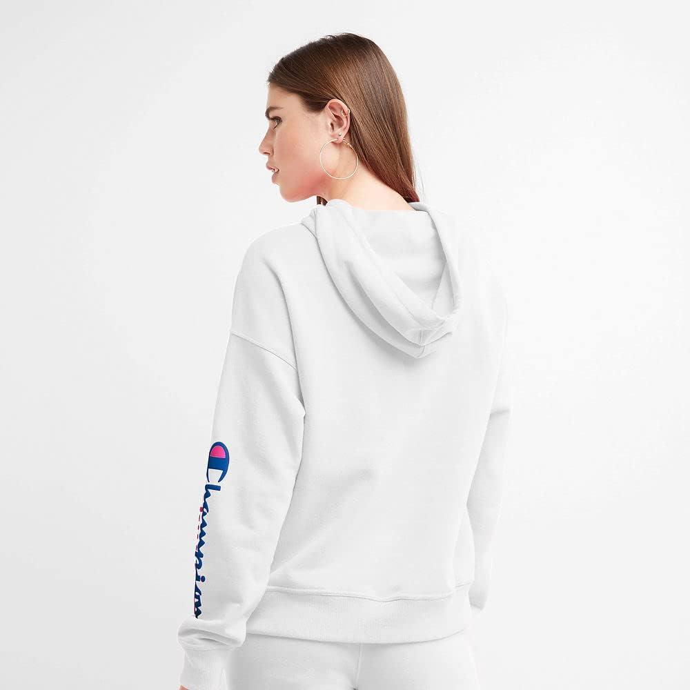 Champion Women’s Pullover Fleece Hoodie, Loose Fit, Midweight, Script Logo(White Champion Script)