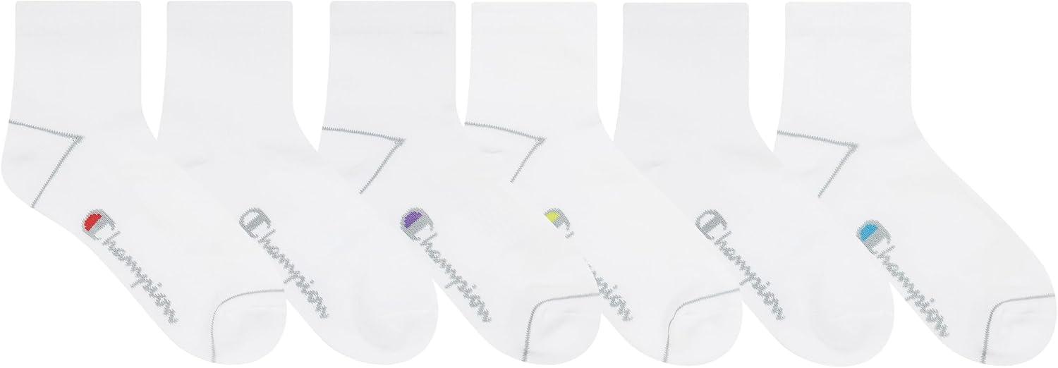 Stay comfortable and supported all day with Champion Women’s Quarter Socks, designed for both performance and everyday wear. This 6-pack of cushioned women’s socks features moisture-wicking fabric to help keep feet cool, dry, and fresh during workouts, errands, or long days on your feet. A soft, breathable polyester-spandex blend provides flexible comfort, while reinforced heels and toes add durability where you need it most. Built-in arch support delivers a secure, stay-put fit that won’t slip or bunch, making these quarter-length socks ideal for sneakers, running shoes, or casual flats—rooted in Champion’s proud heritage of quality and innovation.