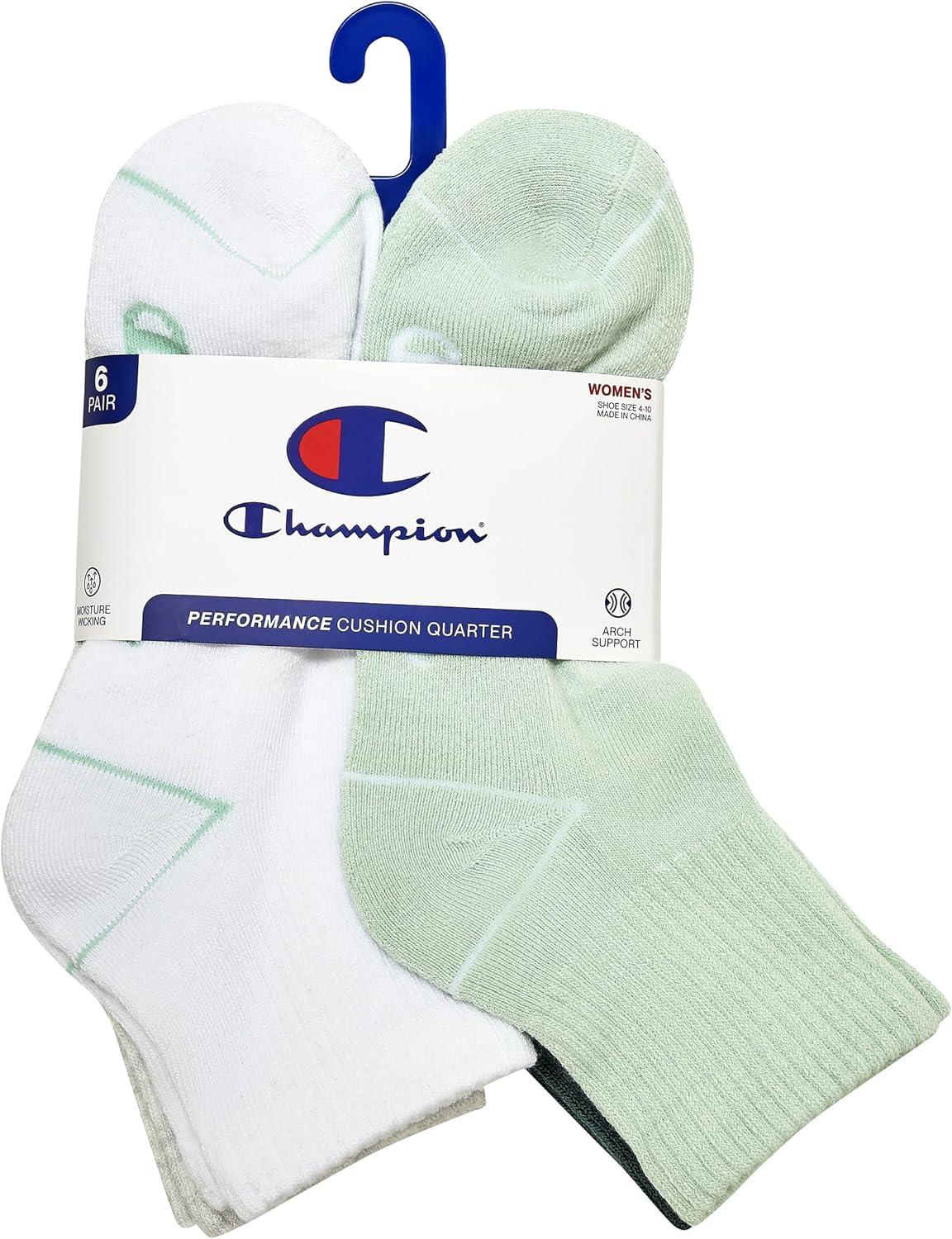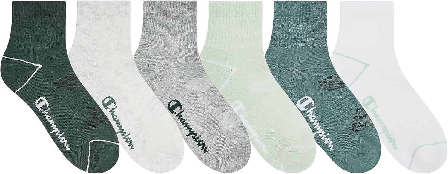 Champion Women's Quarter Socks – 6-Pack Cushioned Athletic Socks with Moisture-Wicking, Arch Support (Size 5-9)(Green Assorted)
