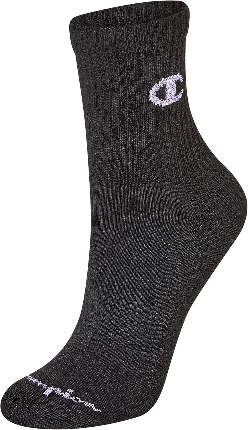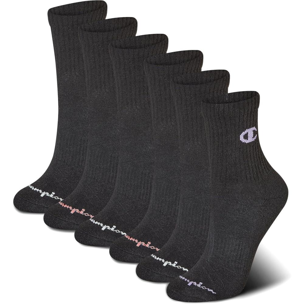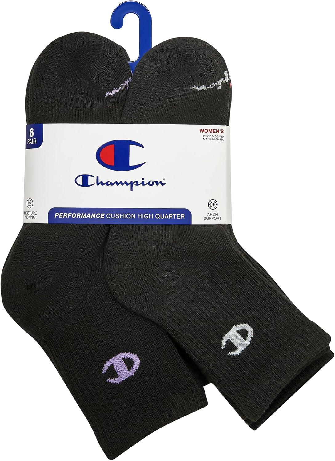 Champion Women's Quarter Socks – 6-Pack Cushioned Athletic Socks with Moisture-Wicking, Arch Support (Size 5-9)(High Quarter Black)