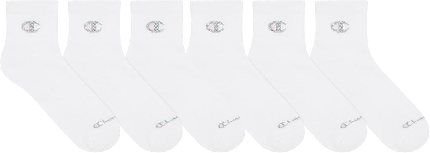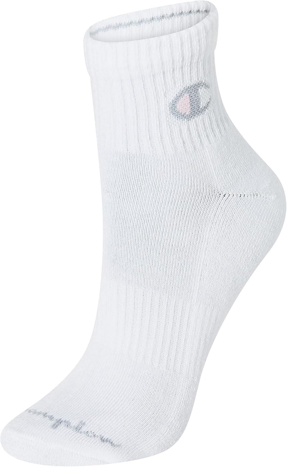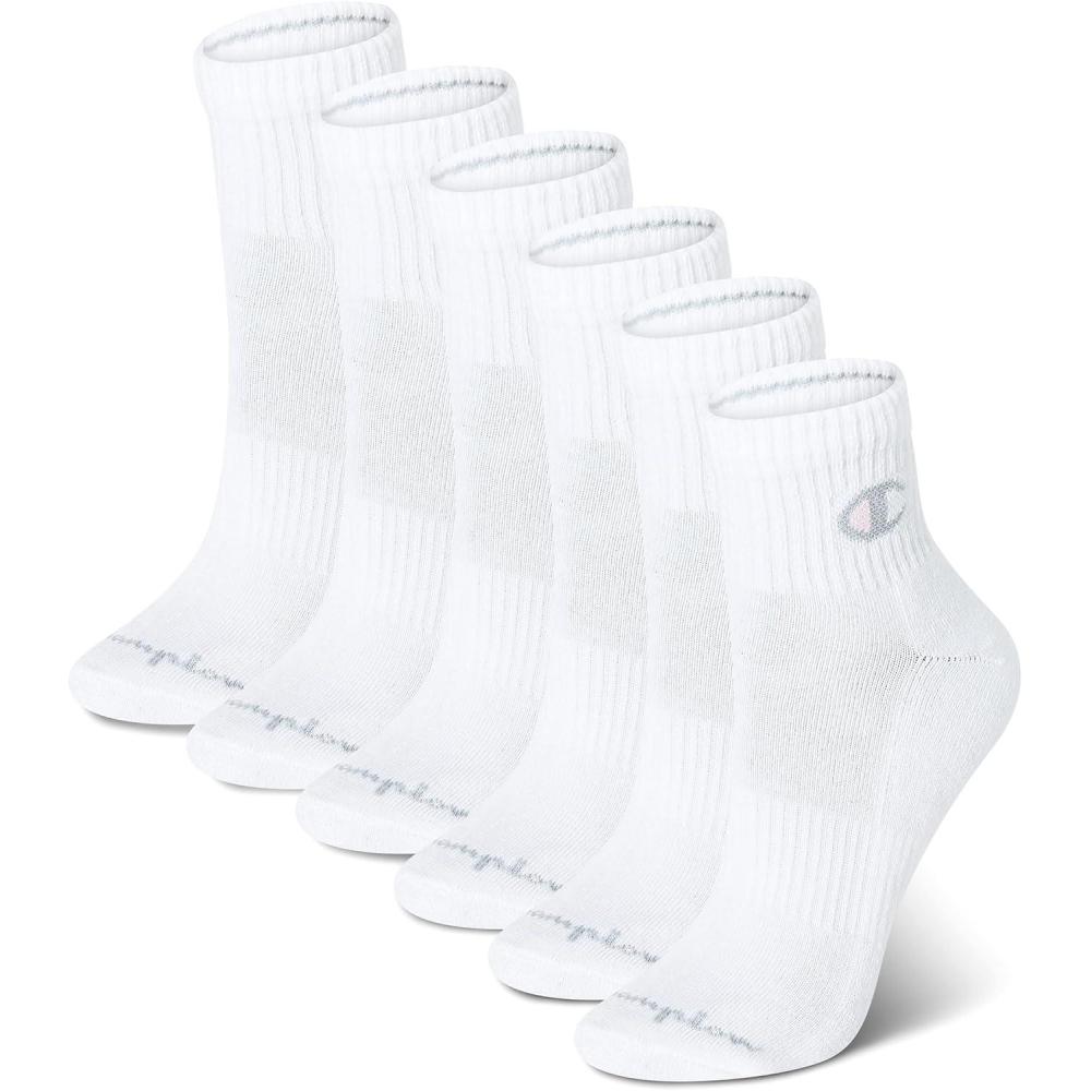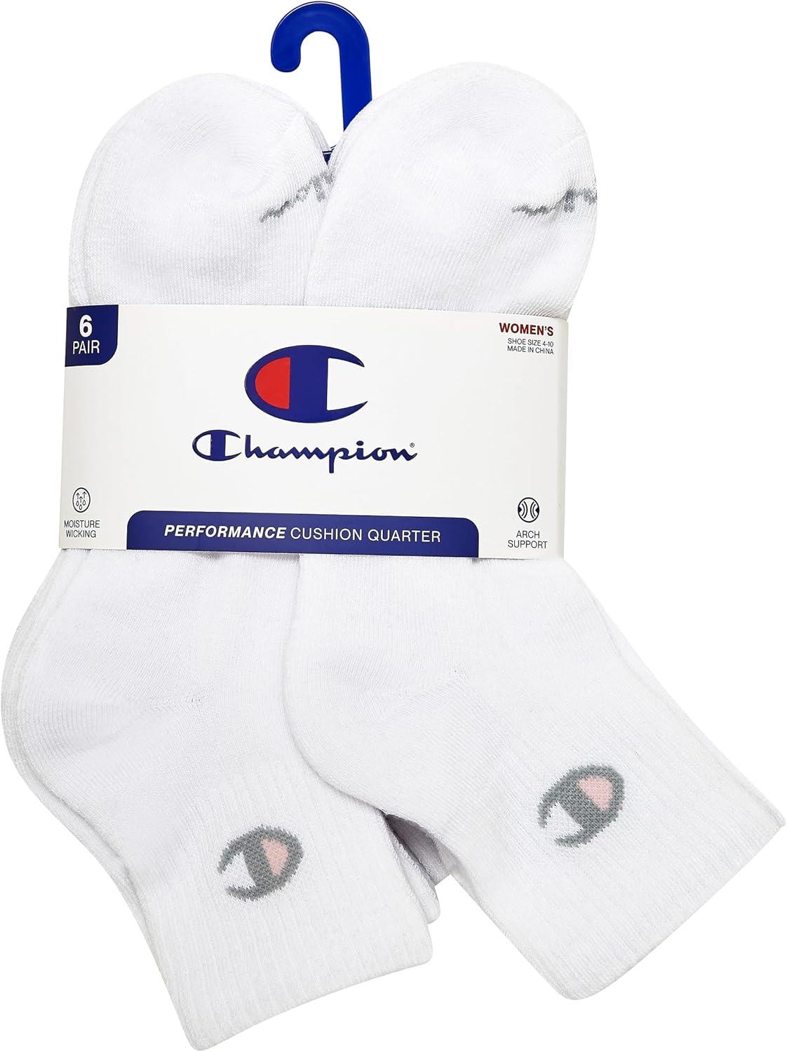 Champion Women's Quarter Socks – 6-Pack Cushioned Athletic Socks with Moisture-Wicking, Arch Support (Size 5-9)(White - Toe Logo)