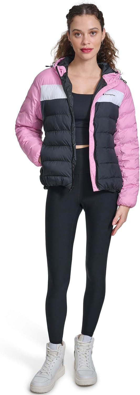 Champion Womens Quilted Coat Packable Puffer Jacket With Hood(Mauve/Navy Combo)
