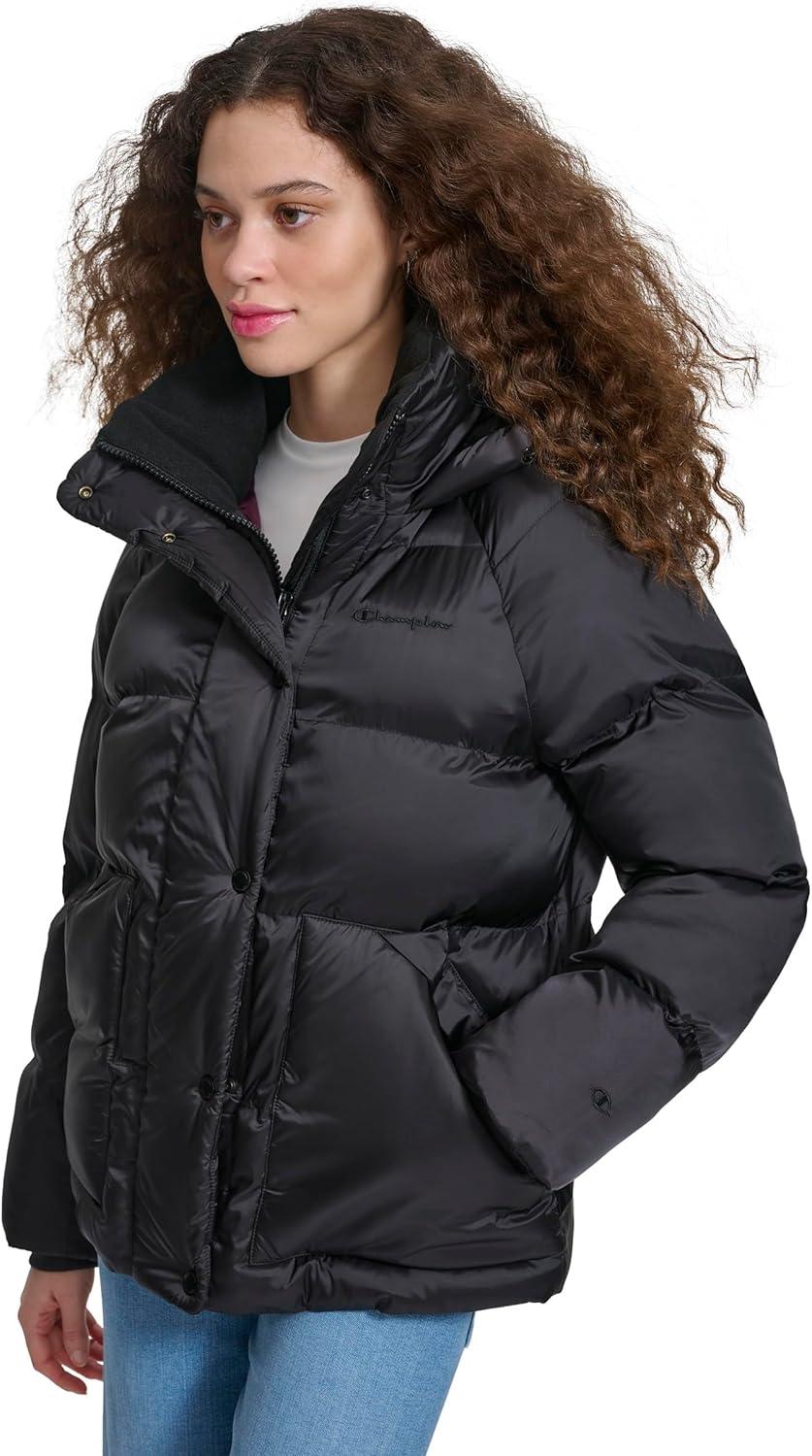 Wrap yourself in warmth and elegance with this women's midweight quilted puffer jacket, thoughtfully designed for those who value both style and comfort. The attached adjustable hood, fleece-lined collar, and storm cuffs offer unparalleled protection from the cold, while the sleek center front zipper with snap placket ensures a secure, flattering fit. With its subtle Champion embroidery and interior script logo, this jacket combines practical features with timeless detailing, making it your perfect companion for chilly days and crisp evenings.
