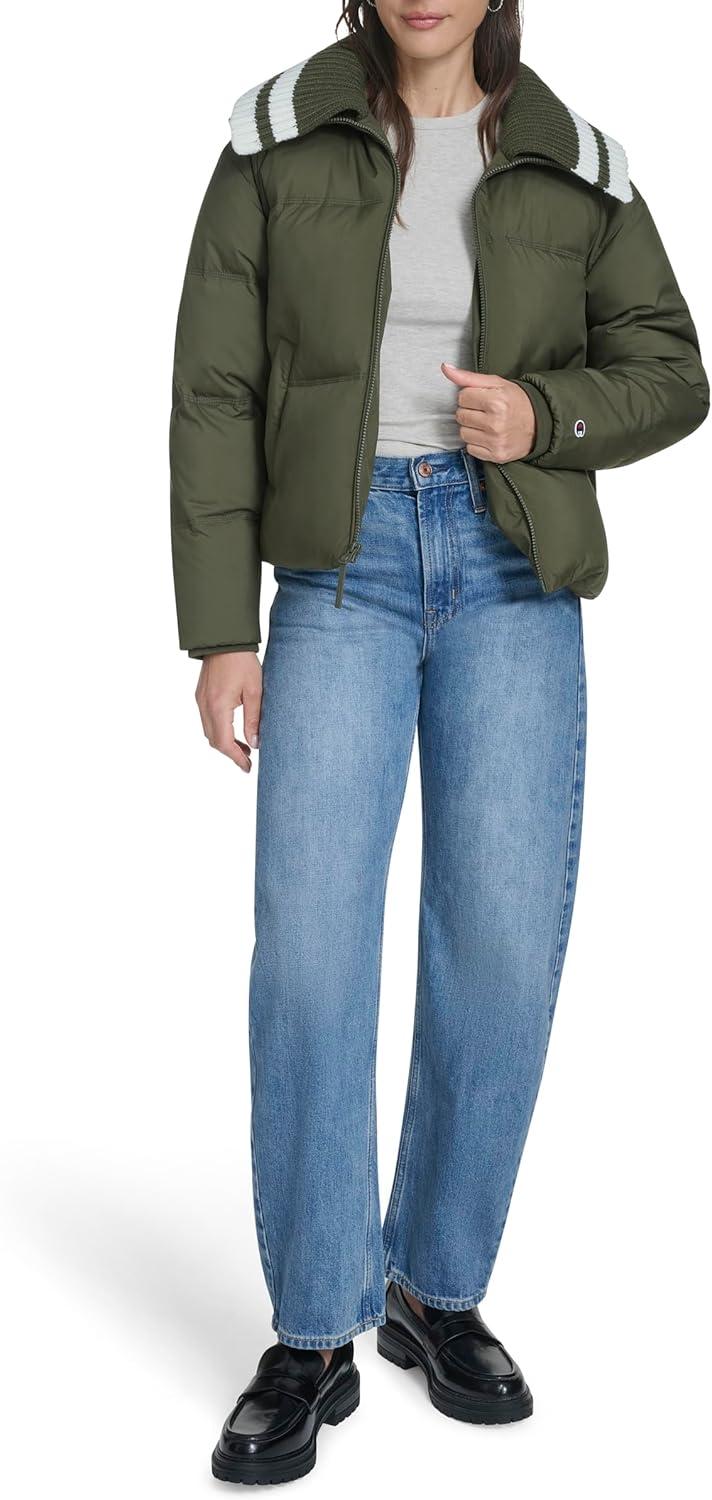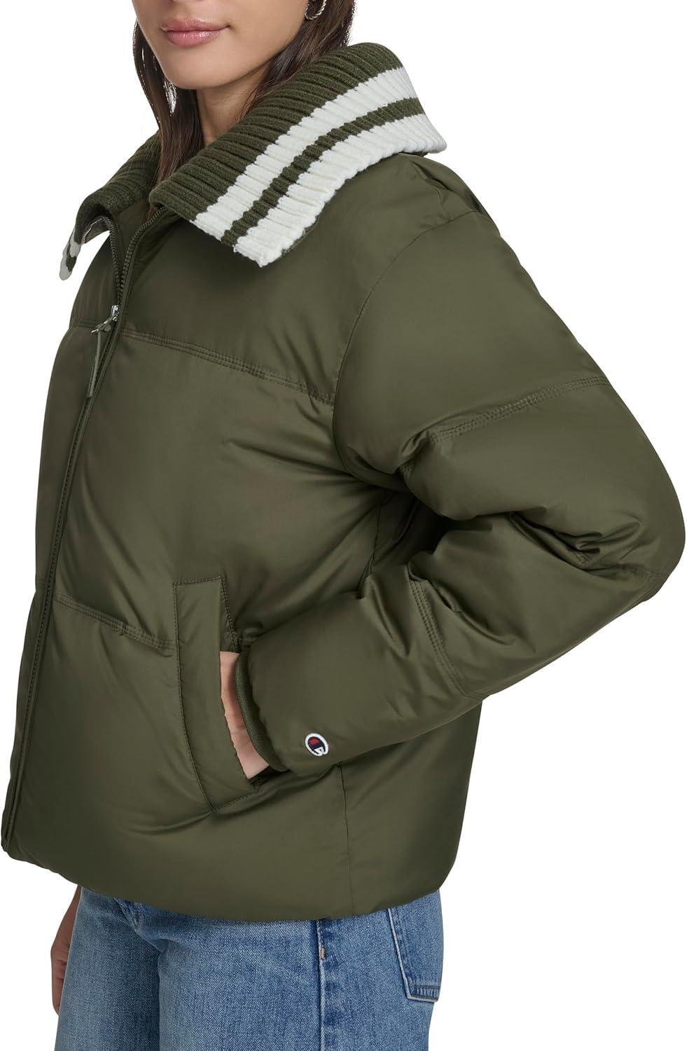 Champion womens Quilted Shawl Collar Puffer Jacket(Olive)