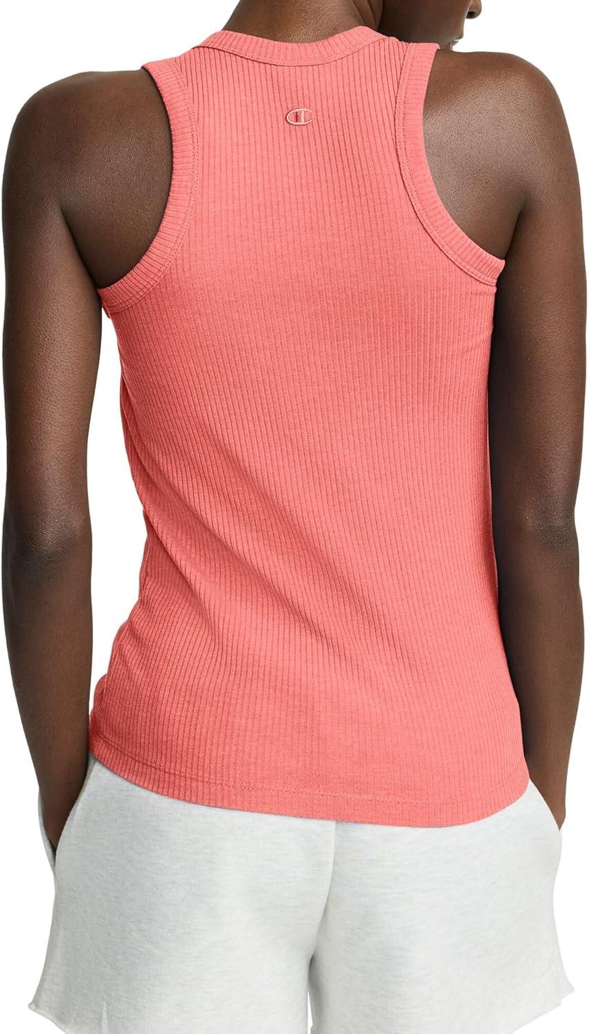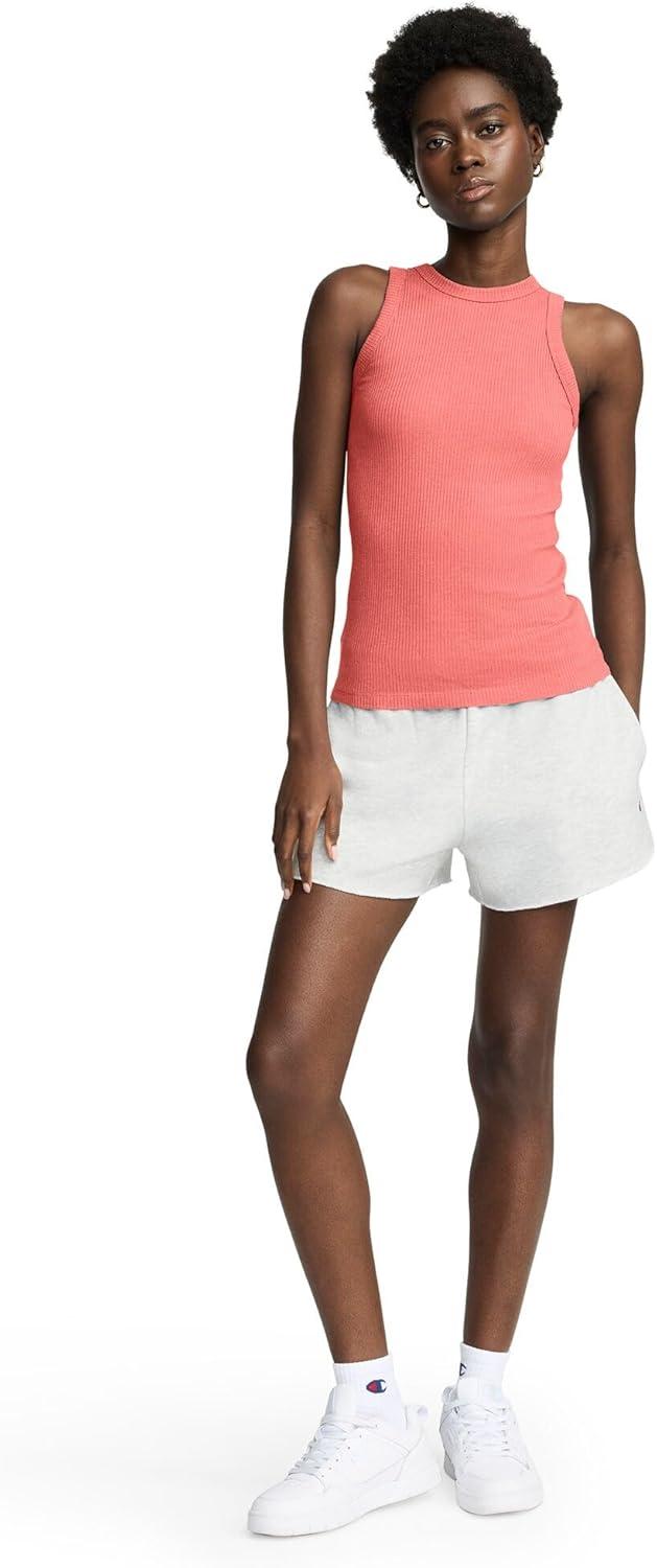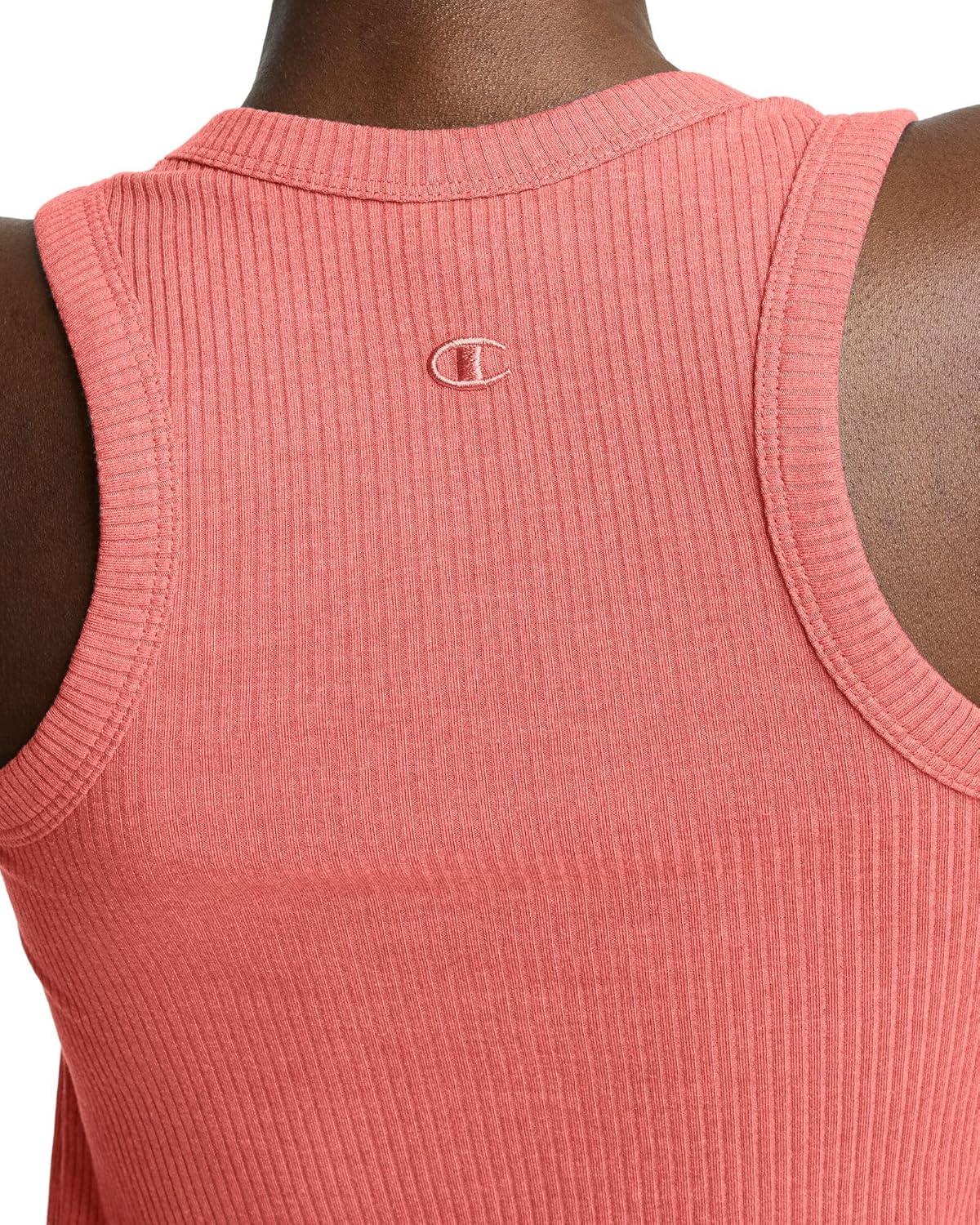 THE CHIC TANK This classic ribbed tank with a high neckline boasts a sporty look that trends from day to night. Made with a cotton blend, this tank top is fitted to the body with ribbed detailing throughout, adding texture that looks and feels great. Finished with a garment dye that leaves no two pieces alike, this women's tank top is as unique as you. The iconic C logo hits at the hem of this feminine muscle tee, offering a cute, streetwear-inspired look that fares from town to tailgate. Pair it with your best joggers or Champion shorts for a signature look head to toe.