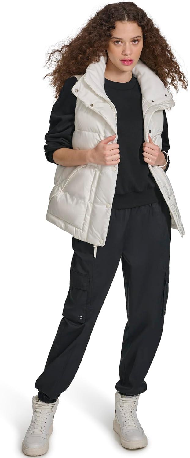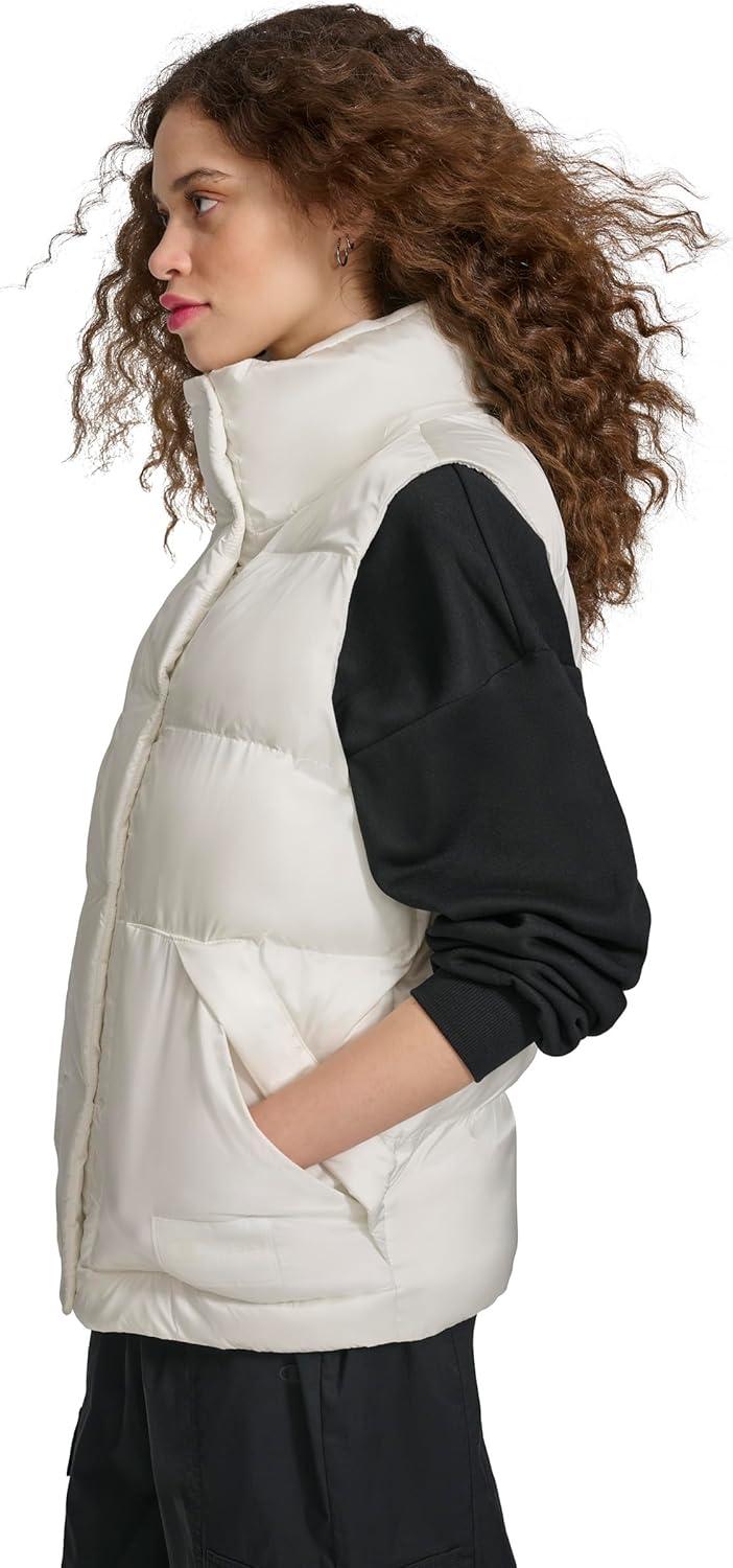 Champion womens Satin Quilted Puffer Vest With Stand Collar(Marshmallow)