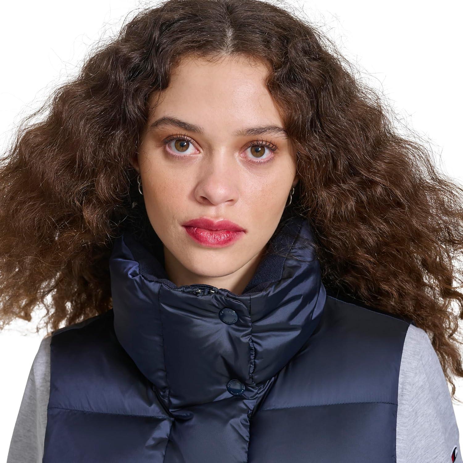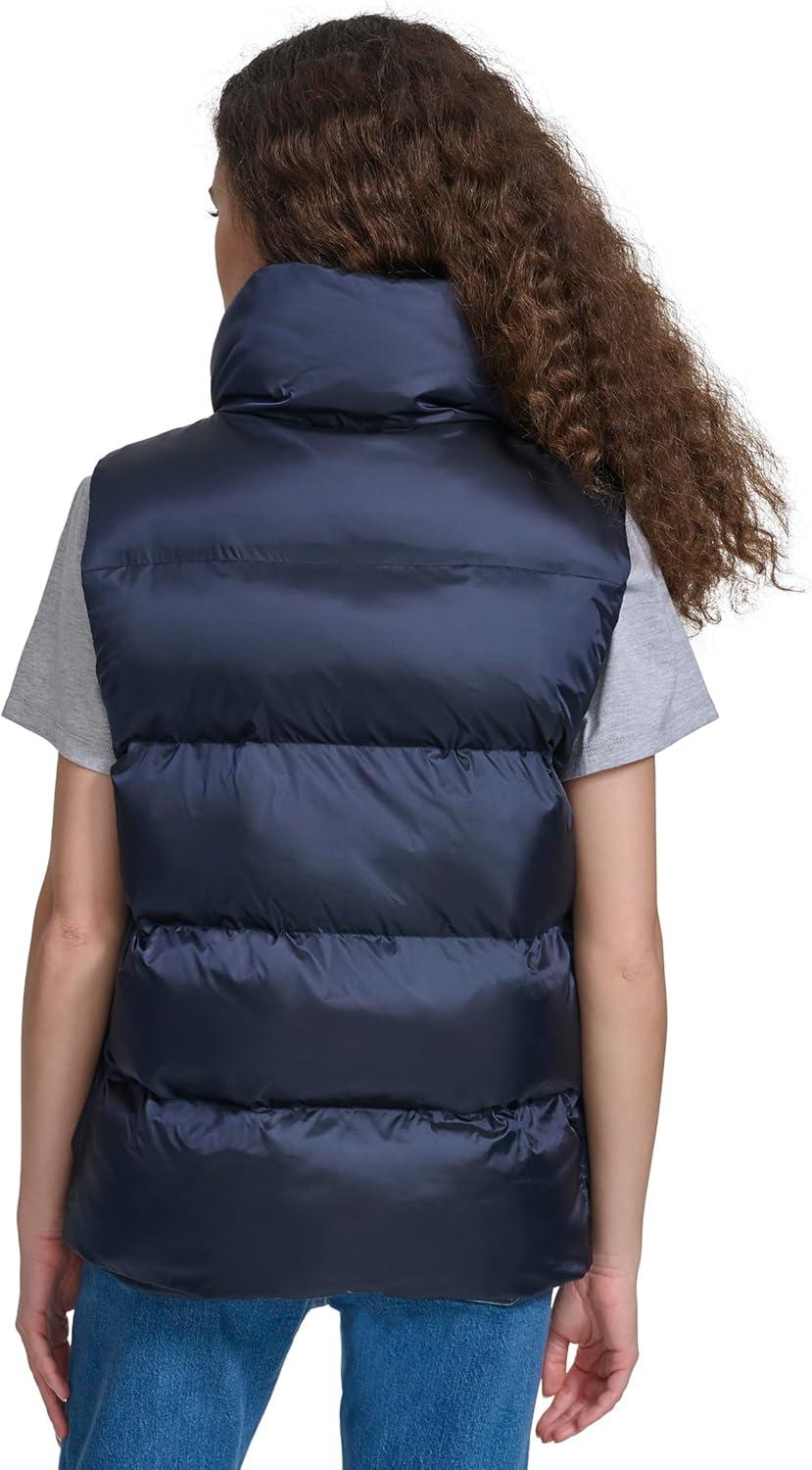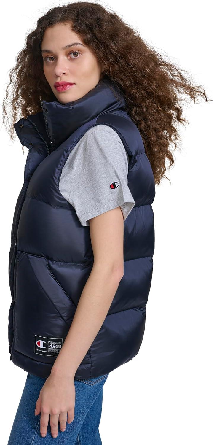 Champion womens Satin Quilted Puffer Vest With Stand Collar(Navy)