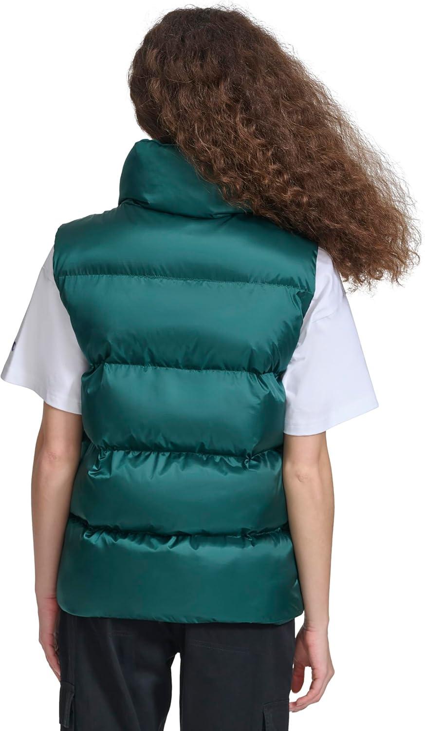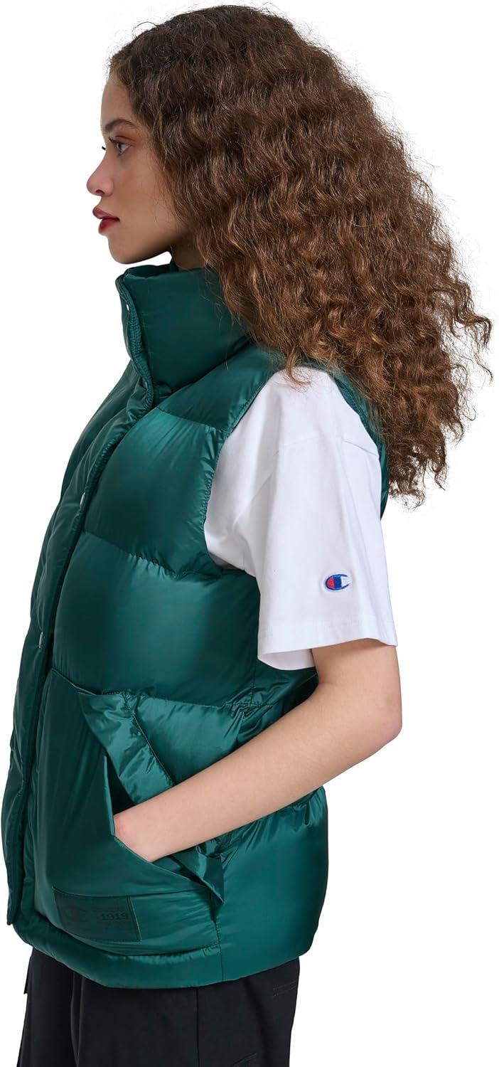 Champion womens Satin Quilted Puffer Vest With Stand Collar(Rainforest)