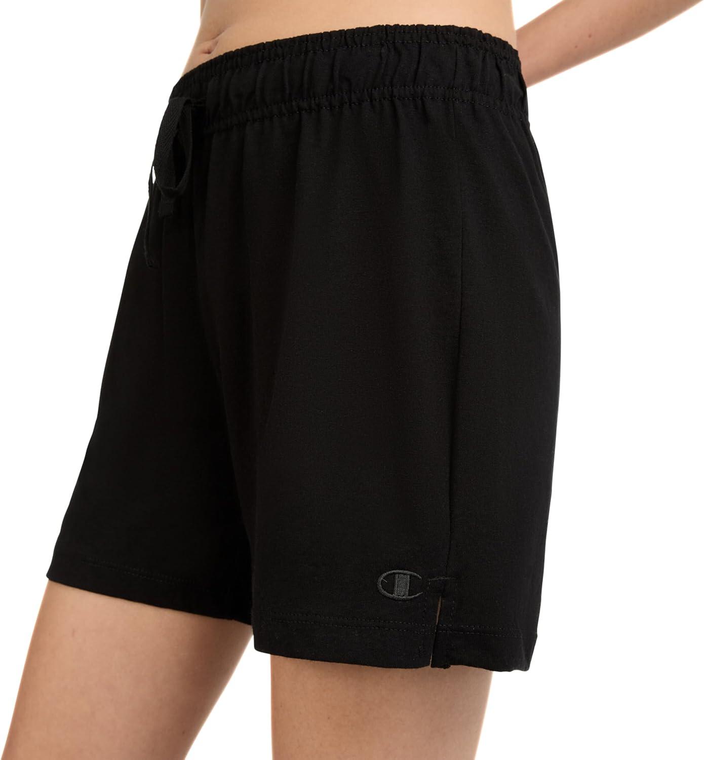 COMFORTABLE, EVERYDAY SHORTS. Whether you’re hitting the town or chilling at home, these comfy shorts for women are about to become the next major player in your warm-weather rotation. These lightweight cotton or cotton blend knit shorts have an elastic waist and drawcords that adjust for a custom fit. The casual-style is perfect for pairing with your favorite Champion tank top, tee, or hoodie – made complete by two side slits that increase mobility and the iconic C logo so everyone knows what you're all about.