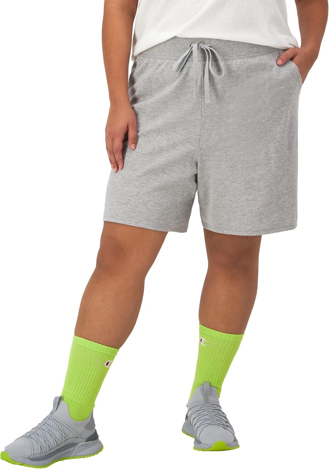 Champion Women's Shorts, Jersey Shorts, Soft, Lightweight, Comfortable Shorts for Women, 5" (Plus Size Available)(Oxford Gray)