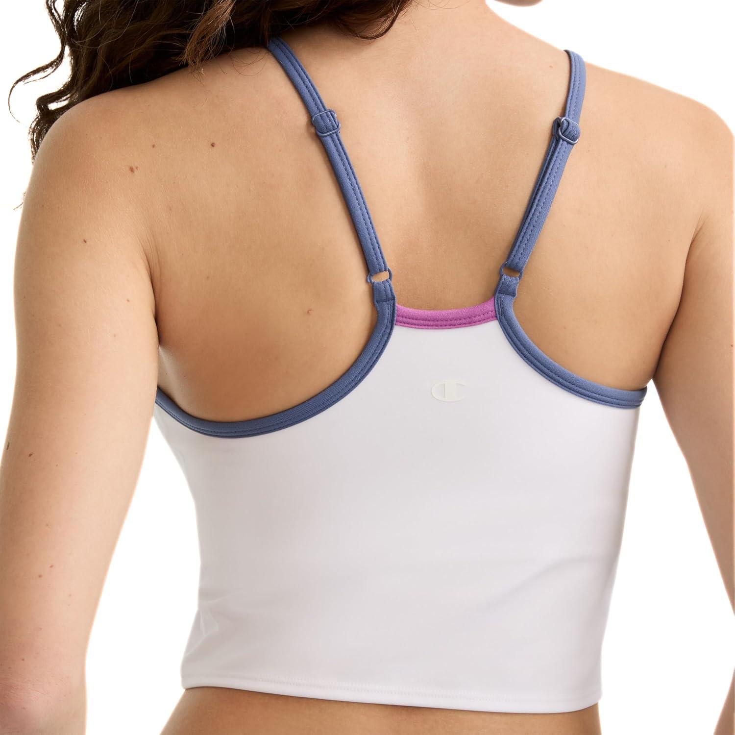THE CAMI WITH THE SOFT SUPPORT From morning hikes to the yoga mat, this Soft Touch Longline Cami provides light support with a built-in shelf bra designed to get you from here to there with easy comfort and on-point style. Anti-odor and moisture-wicking technology keep you feeling fresh under the summer sun, while the double-peached fabric keeps this cami soft on the skin. Fitted and cropped to suit your best high-waisted Champion leggings, this tank top features a racerback design with adjustable straps for the perfect fit. The iconic C logo hits at the center back of this top for a recognizable style no matter where you go.