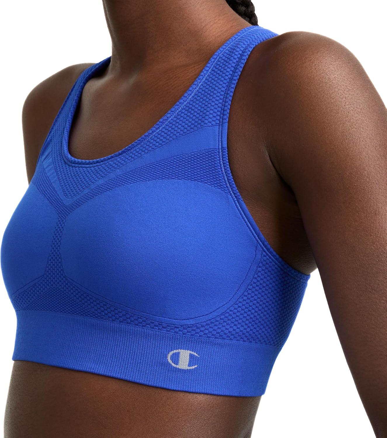 Champion Women's Sports Bra, Infinity Racerback, Moderate Support, Seamless Sports Bra for Women(Flight Blue)