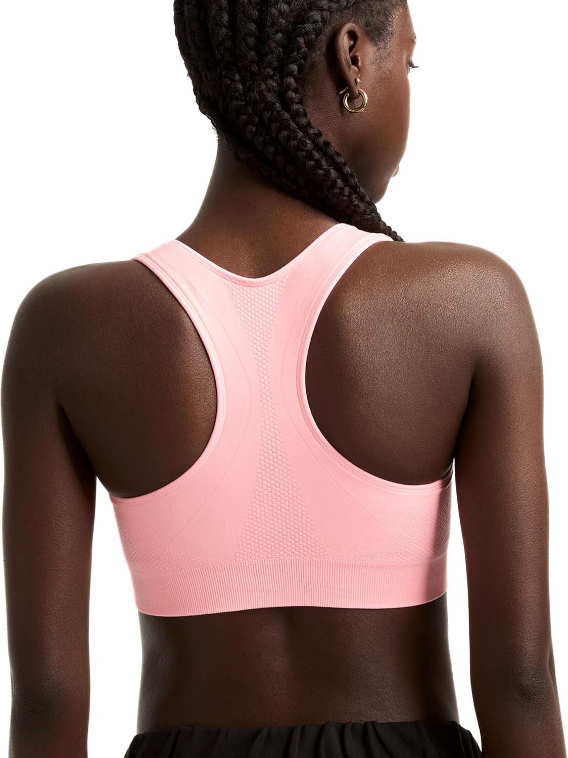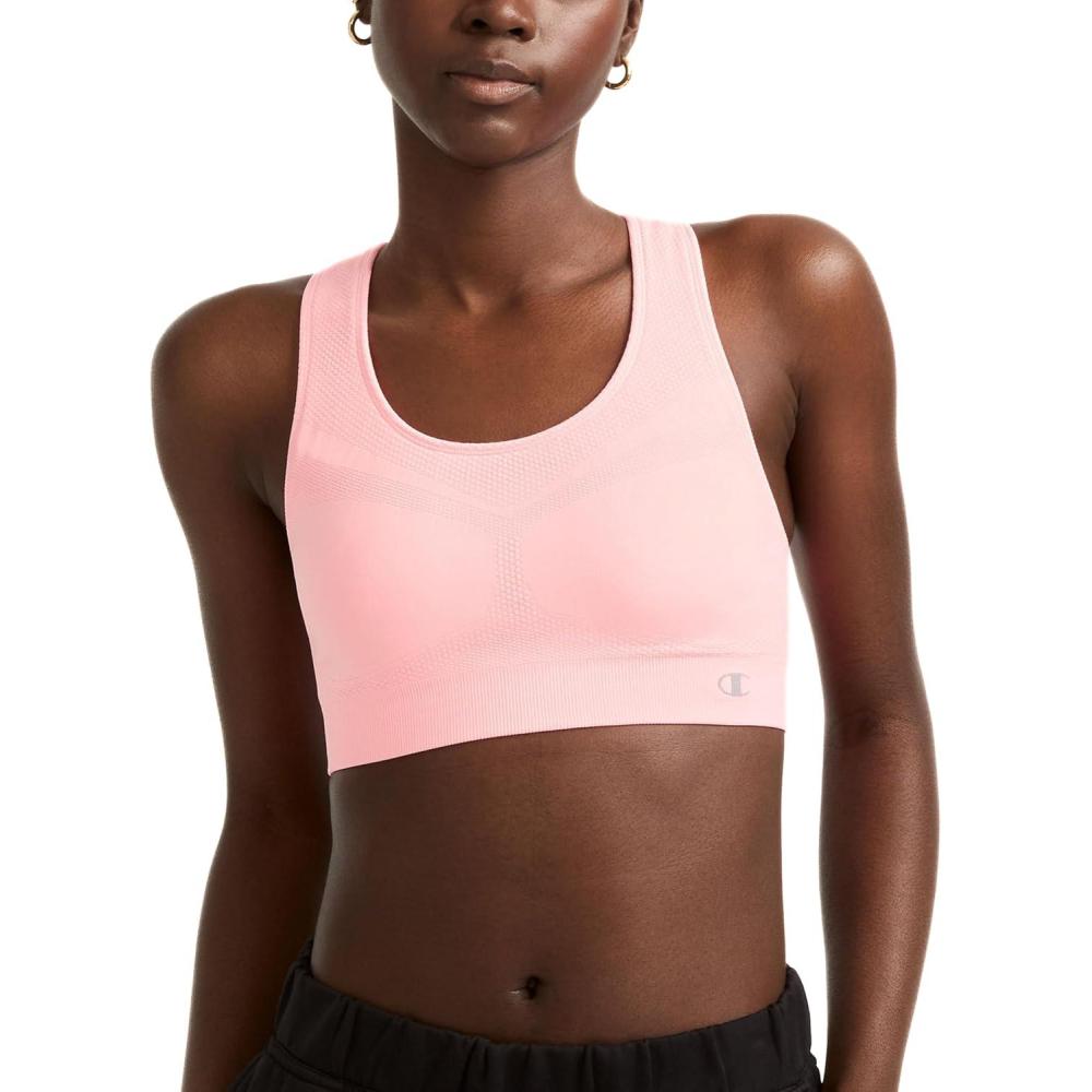Champion Women's Sports Bra, Infinity Racerback, Moderate Support, Seamless Sports Bra for Women(Pink Bow)