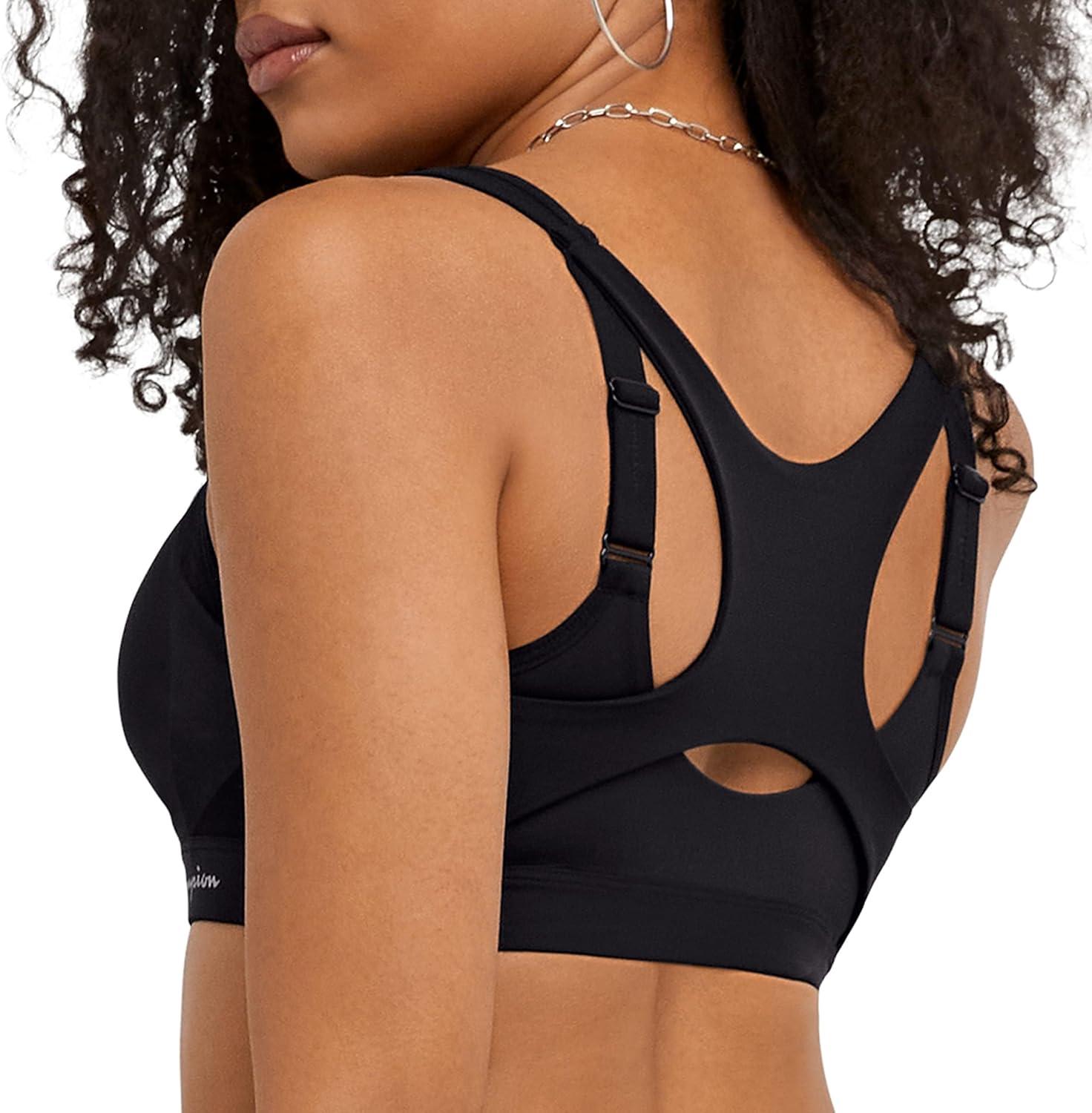 Champion Women's Sports Bra, Motion Control Zip High-impact Sports Bra, Wirefree Bra for Women(Black)